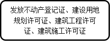 (二)一站式辦理。在土地摘牌、繳納相關(guān)費(fèi)用后,提供技術(shù)審查合格的修建性規(guī)劃方案、建筑方案、施工圖等有關(guān)資料,可在平臺(tái)上一次性申請(qǐng)辦理不動(dòng)產(chǎn)登記證、規(guī)劃用地許可證、建筑工程規(guī)劃許可證、建筑工程施工許可證,相關(guān)部門(mén)并聯(lián)受理,并聯(lián)審批,一次性發(fā)證。