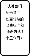 15、人社部門(mén):負(fù)責(zé)提供工傷責(zé)任險(xiǎn)的收費(fèi)標(biāo)準(zhǔn)和繳費(fèi)方式,5個(gè)工作日。