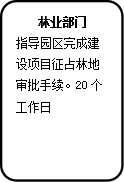 17、林業(yè)部門(mén):指導(dǎo)園區(qū)完成建設(shè)項(xiàng)目征占用林地審批手續(xù),依職權(quán)提出豁免事項(xiàng)、承諾事項(xiàng)清單,20個(gè)工作日。