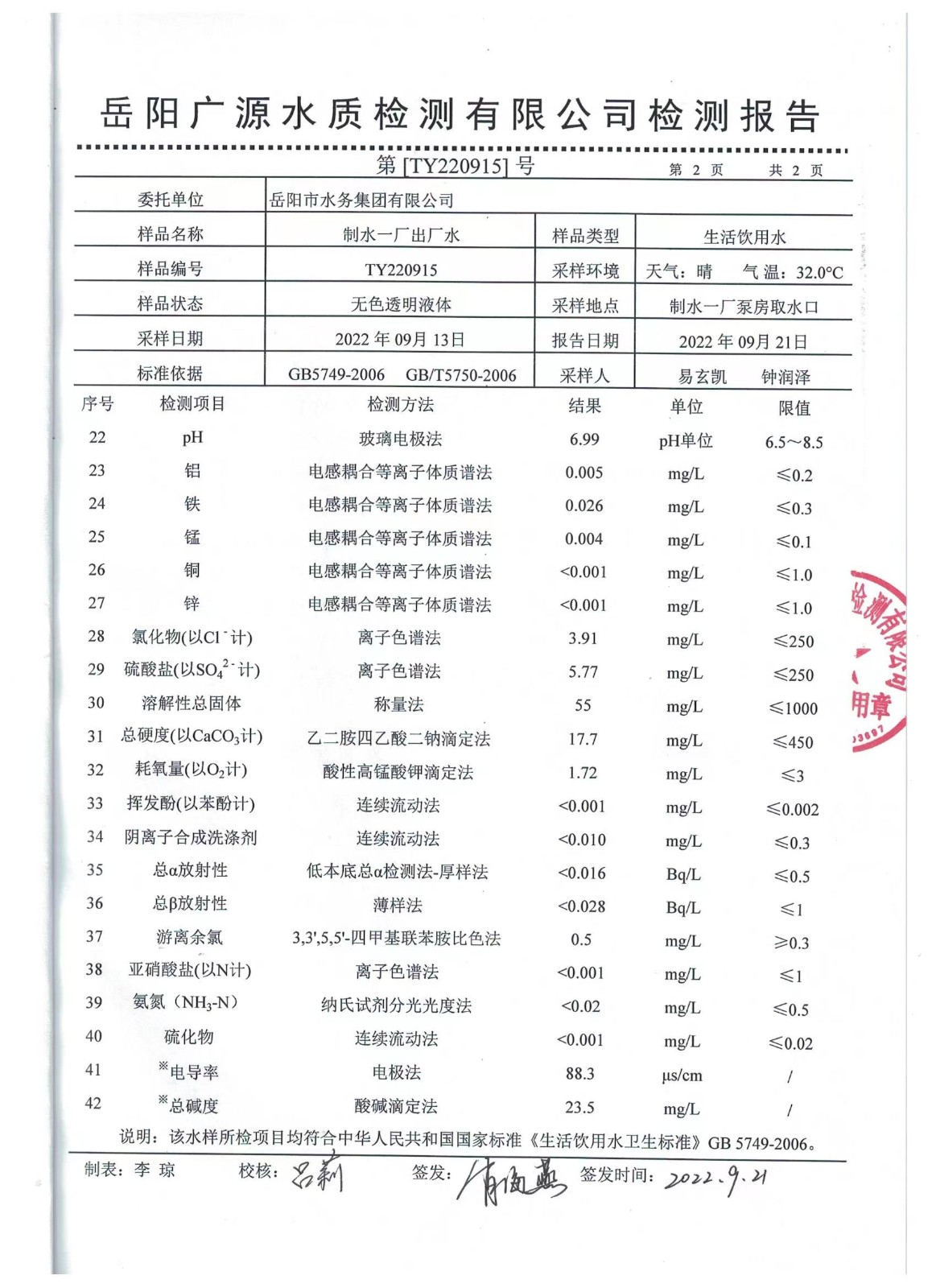 下一篇:2022年09月岳陽市水務(wù)集團(tuán)水源水水質(zhì)檢測月報(bào)表