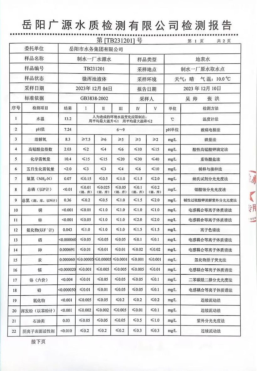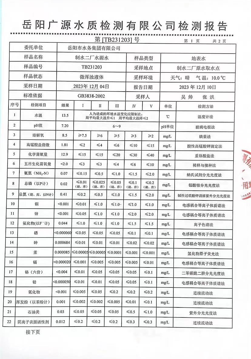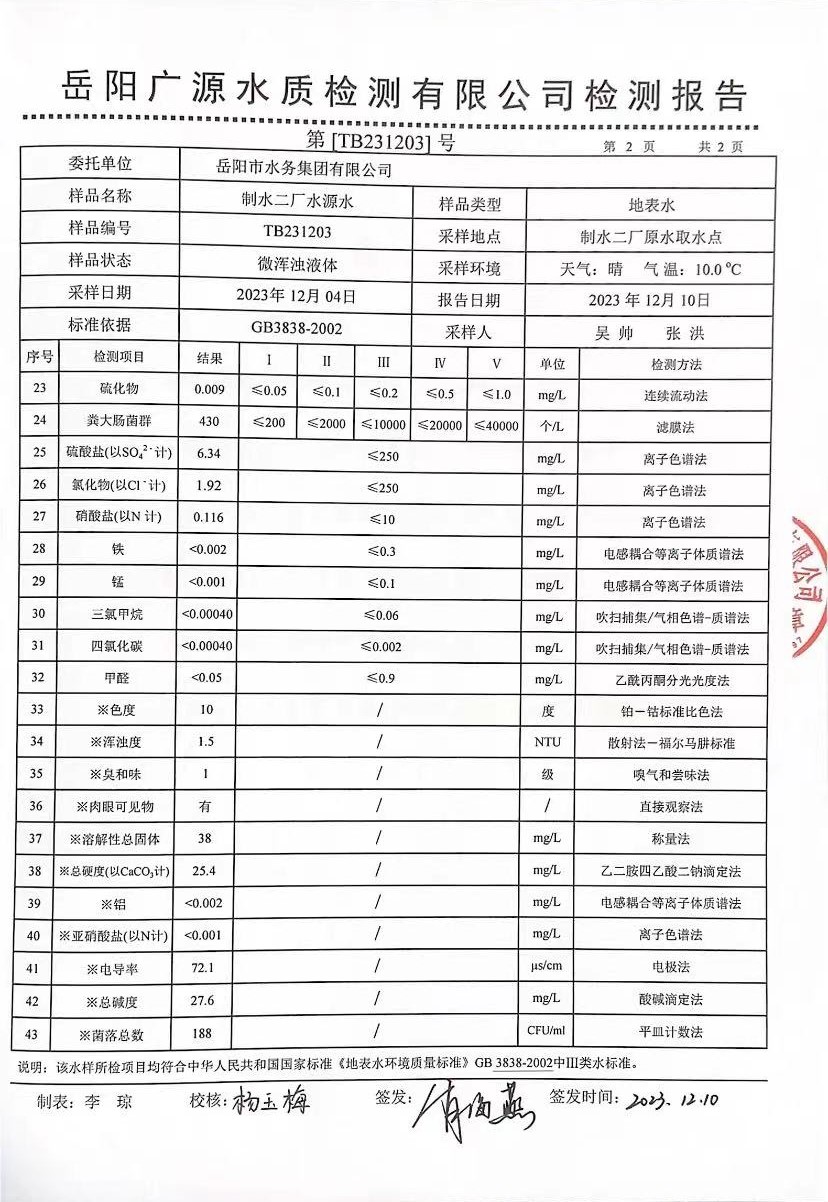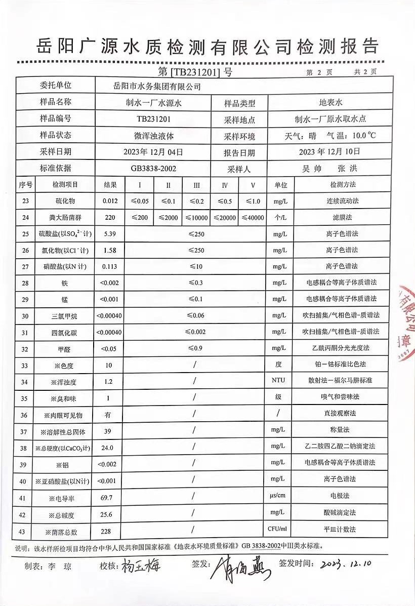 下一篇:2023年12月岳陽市水務(wù)集團(tuán)出廠水水質(zhì)檢測月報(bào)表