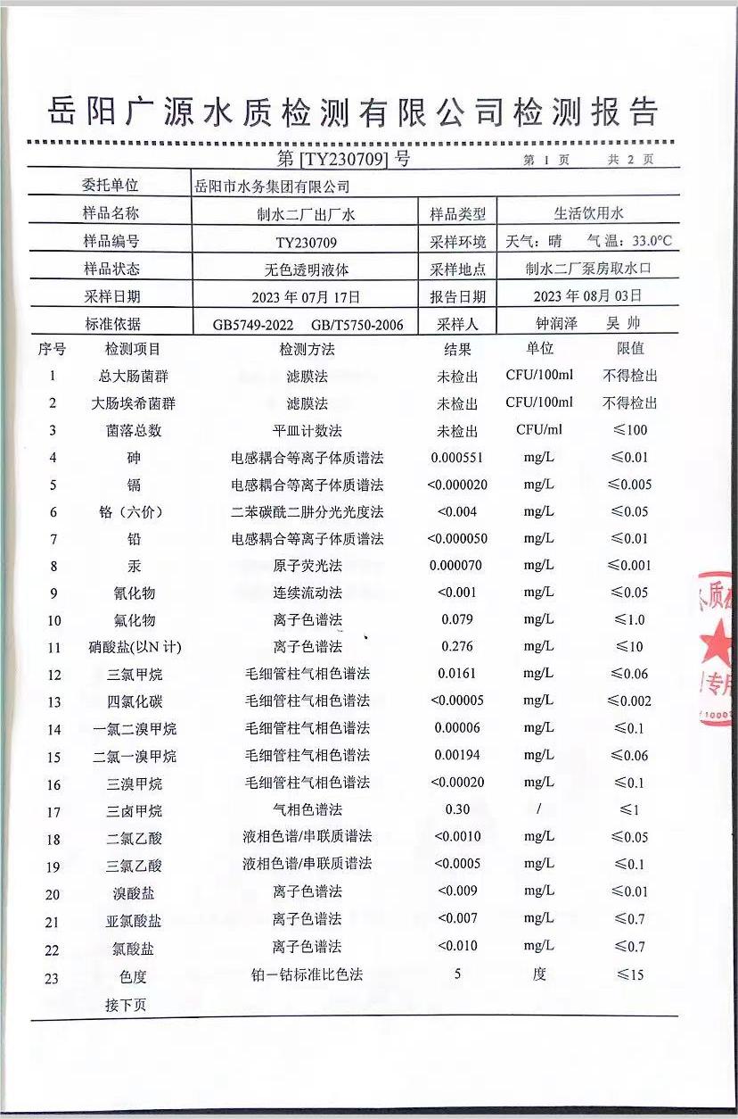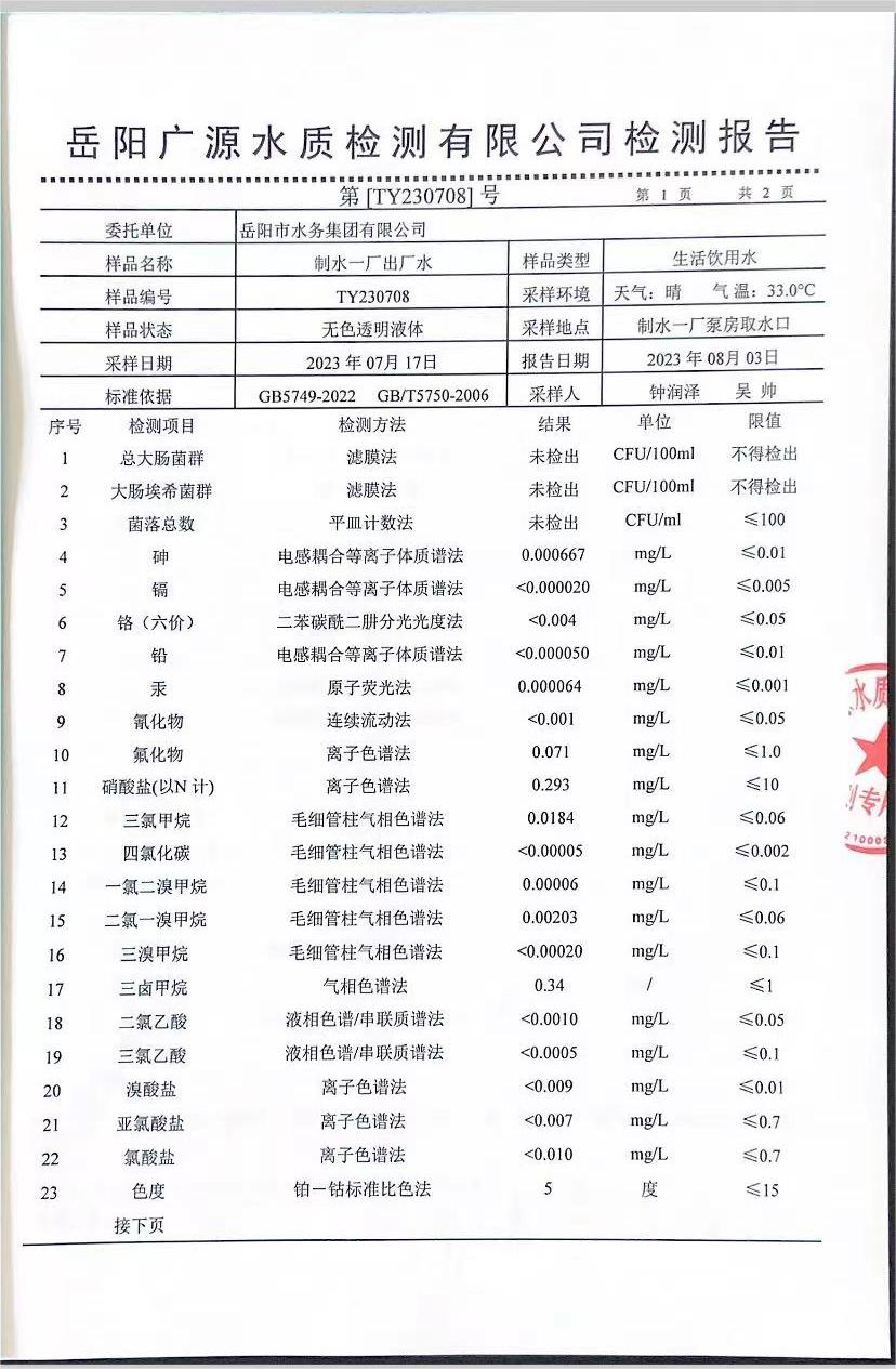 下一篇:2023年岳陽市水務(wù)集團(tuán)出廠水水質(zhì)檢測106項(xiàng)報(bào)告(上半年)