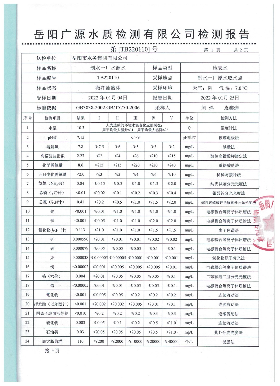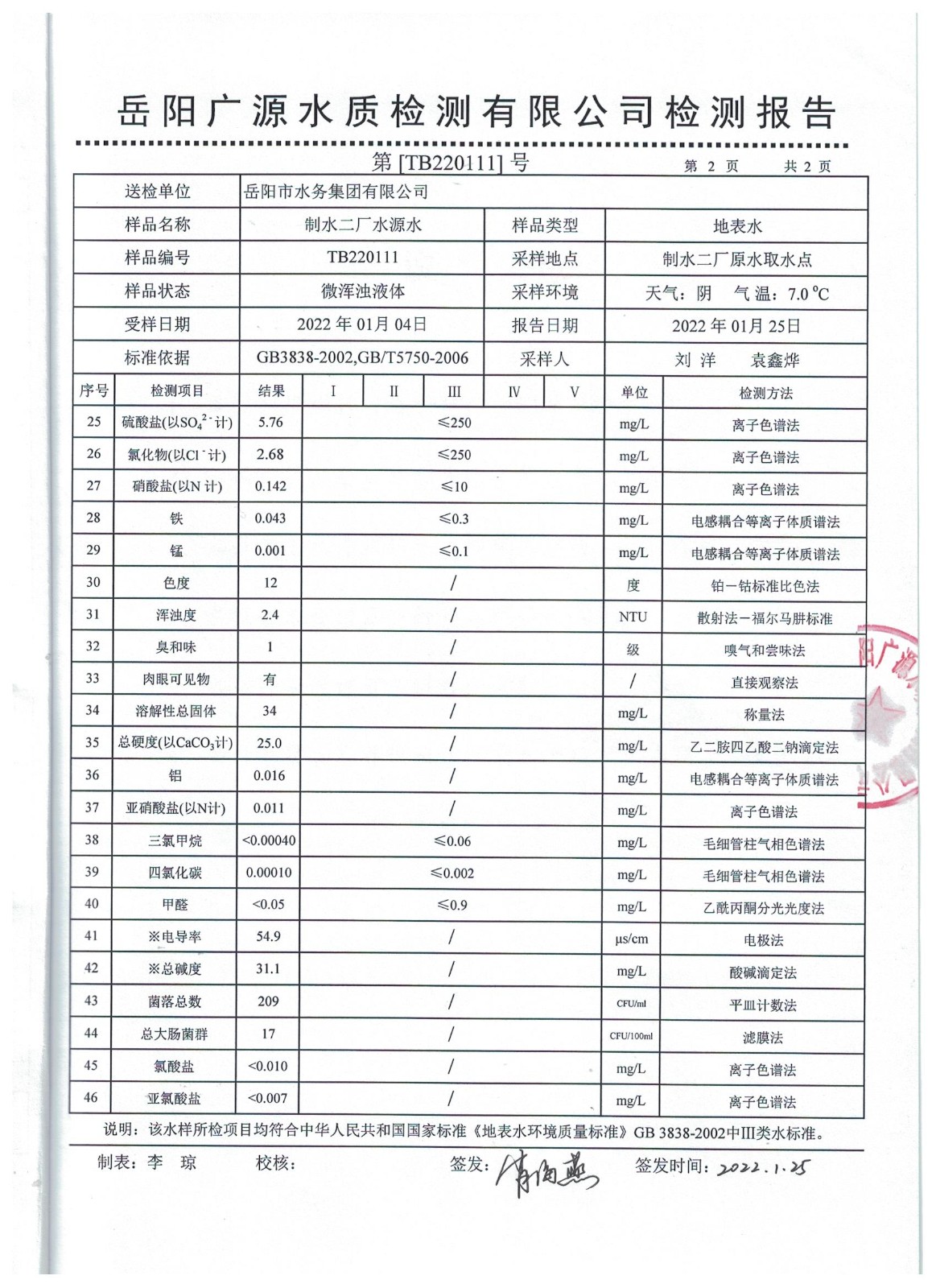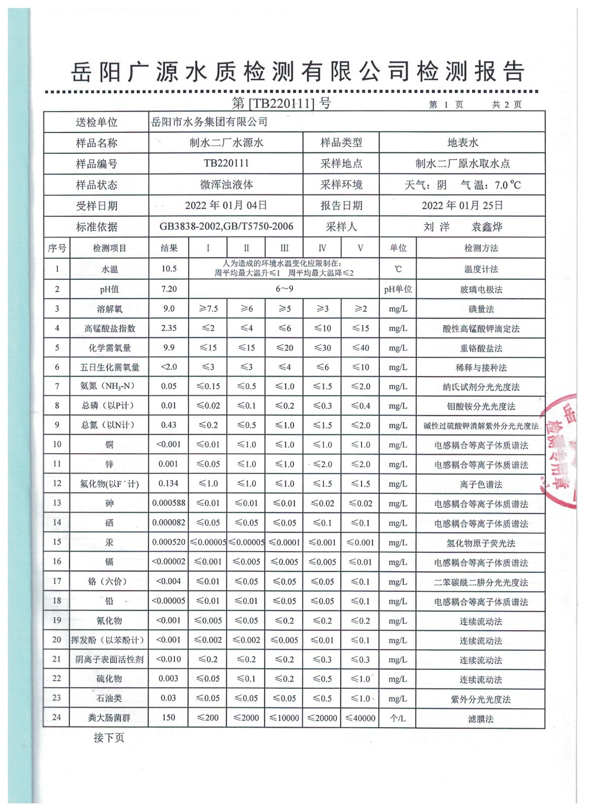 上一篇:2022年01月岳陽市水務(wù)集團(tuán)出廠水水質(zhì)檢測(cè)月報(bào)表