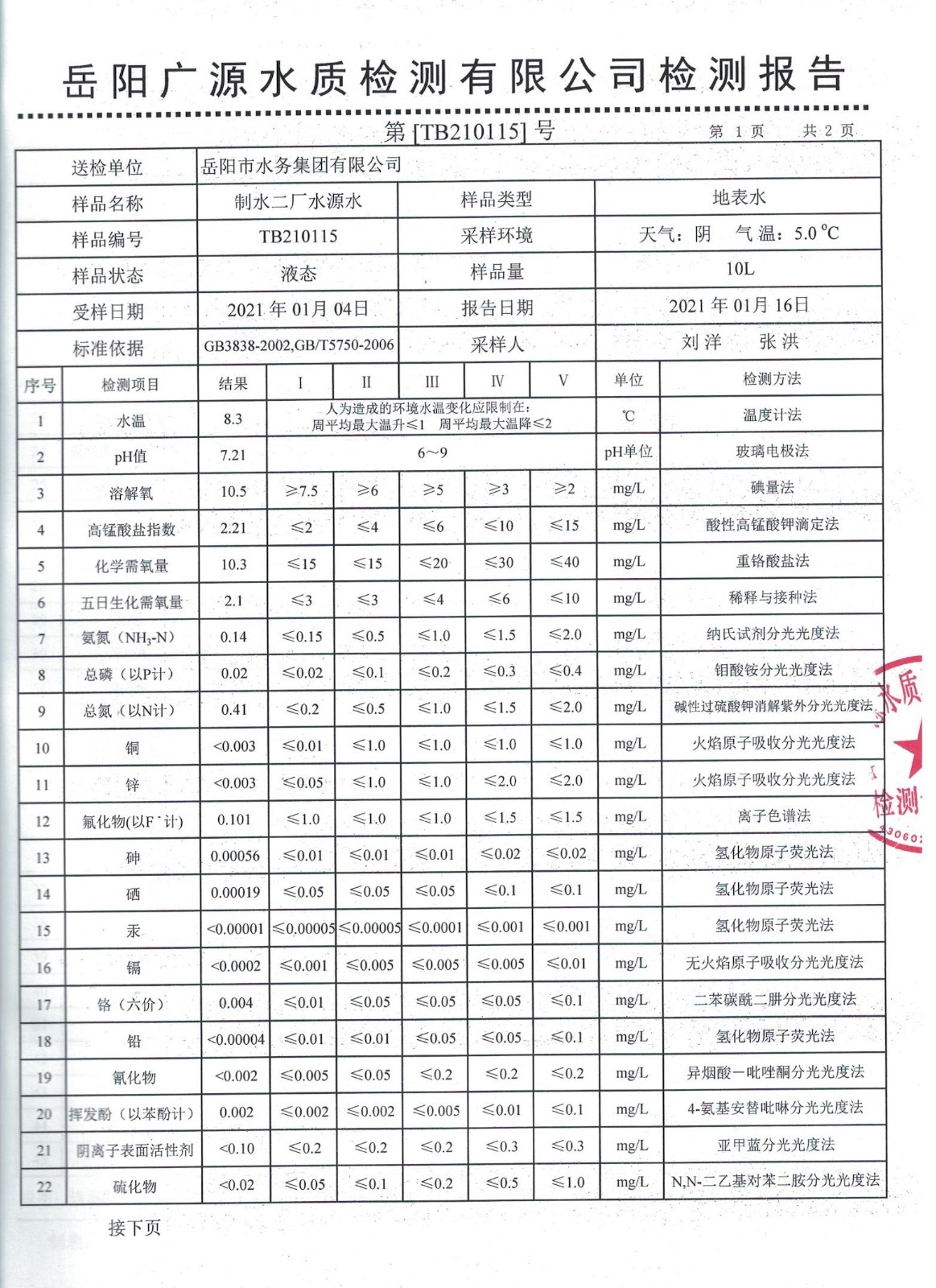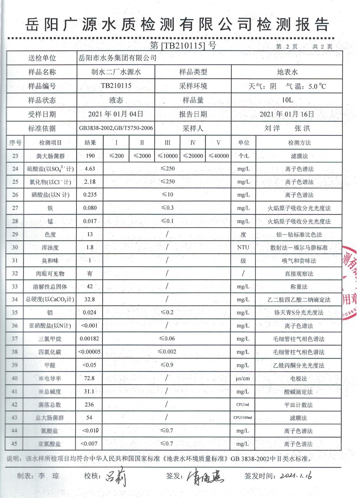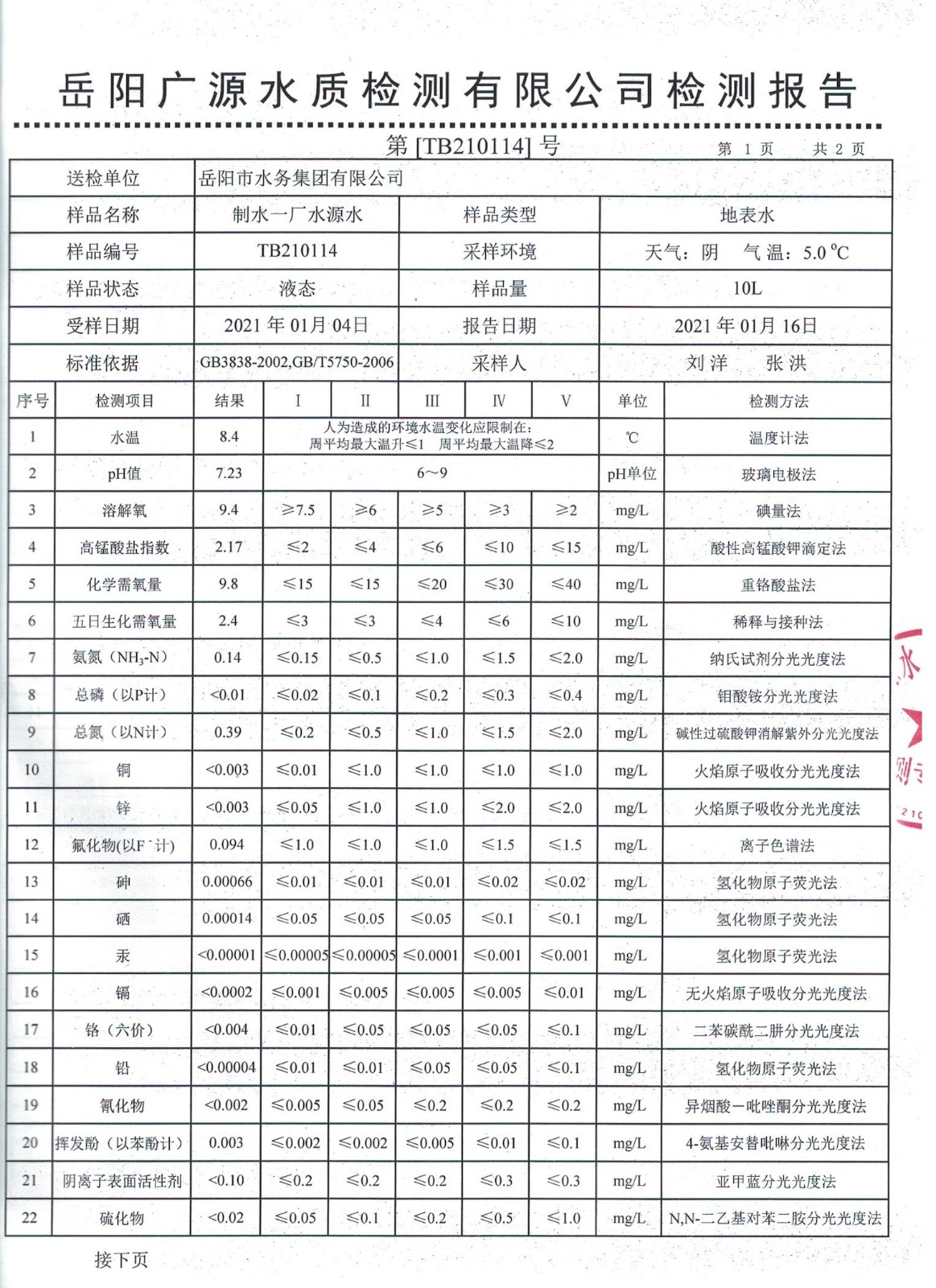 上一篇:2021年01月岳陽市水務(wù)集團(tuán)出廠水水質(zhì)檢測月報(bào)表