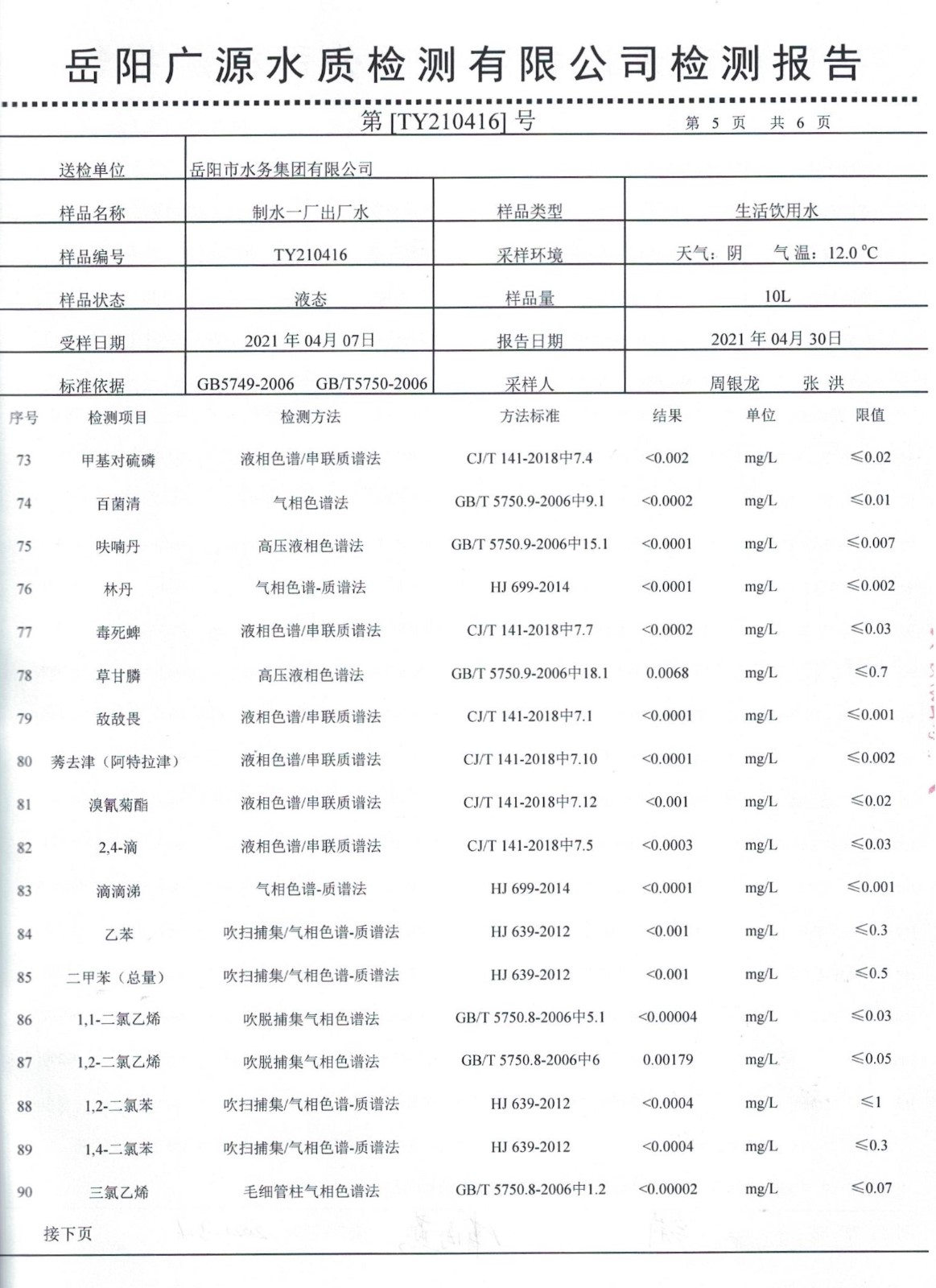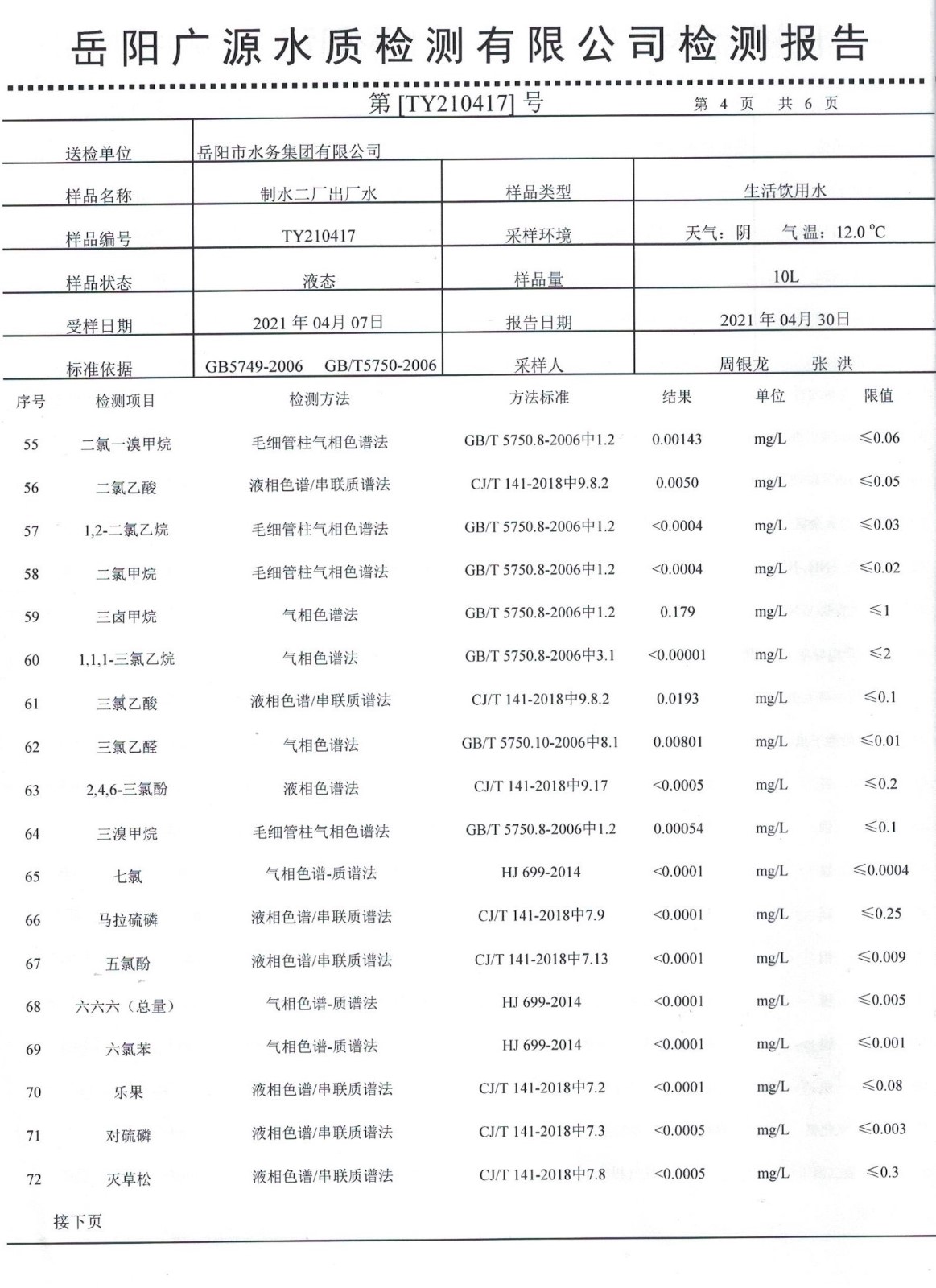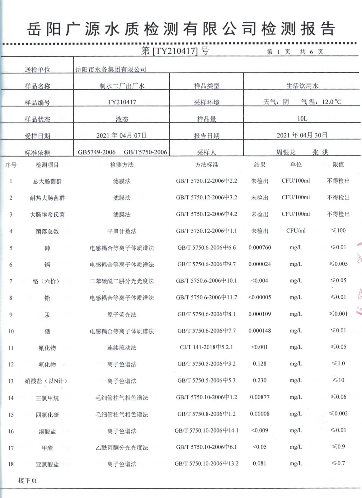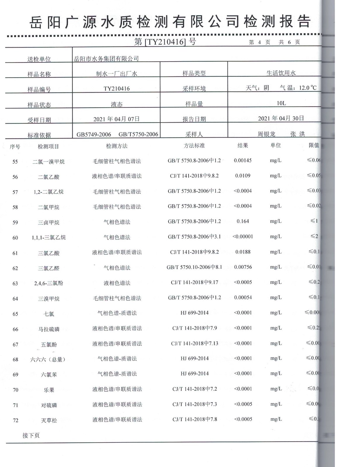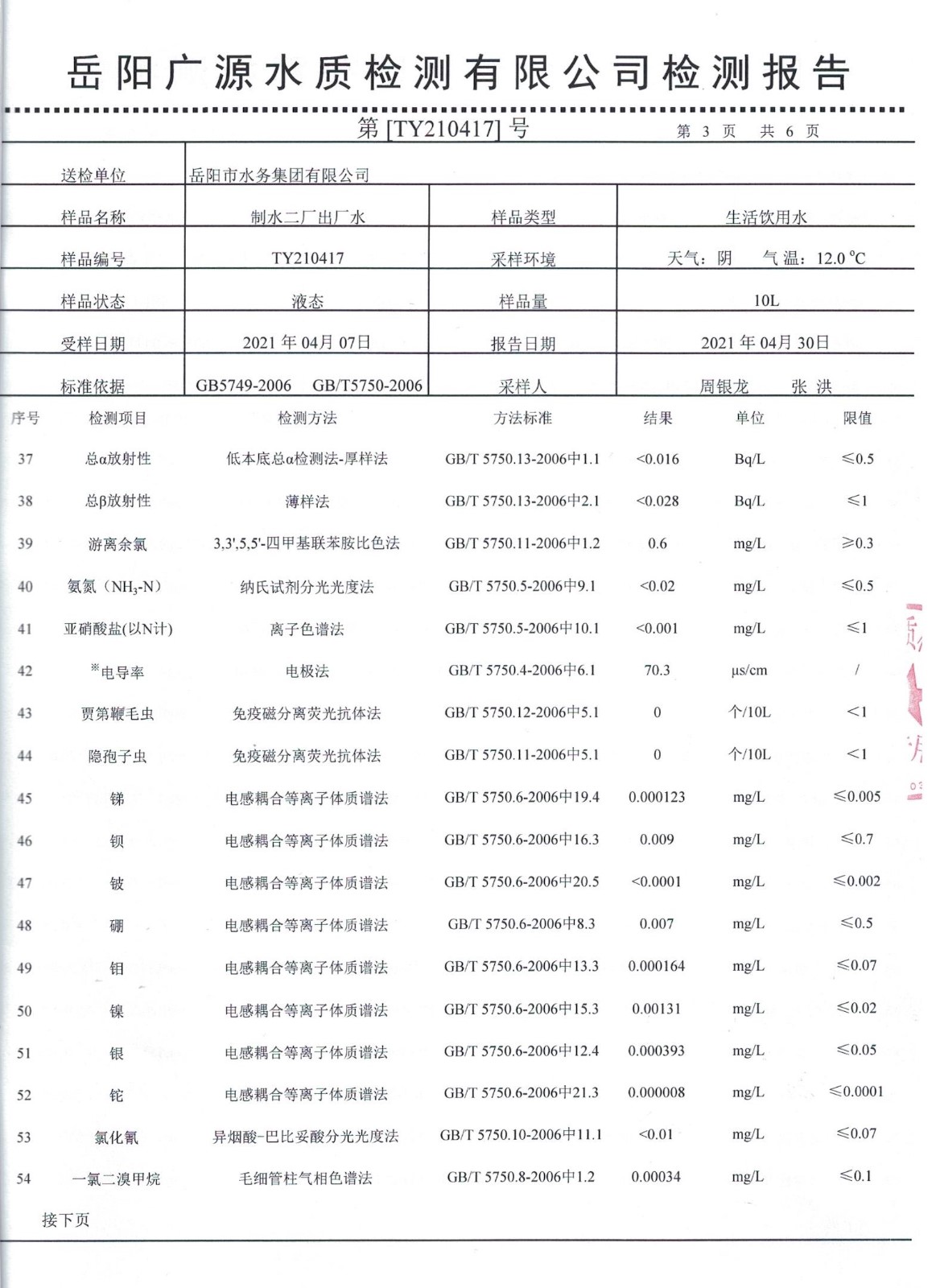 上一篇:2021年04月岳陽(yáng)市水務(wù)集團(tuán)管網(wǎng)水水質(zhì)檢測(cè)月報(bào)表