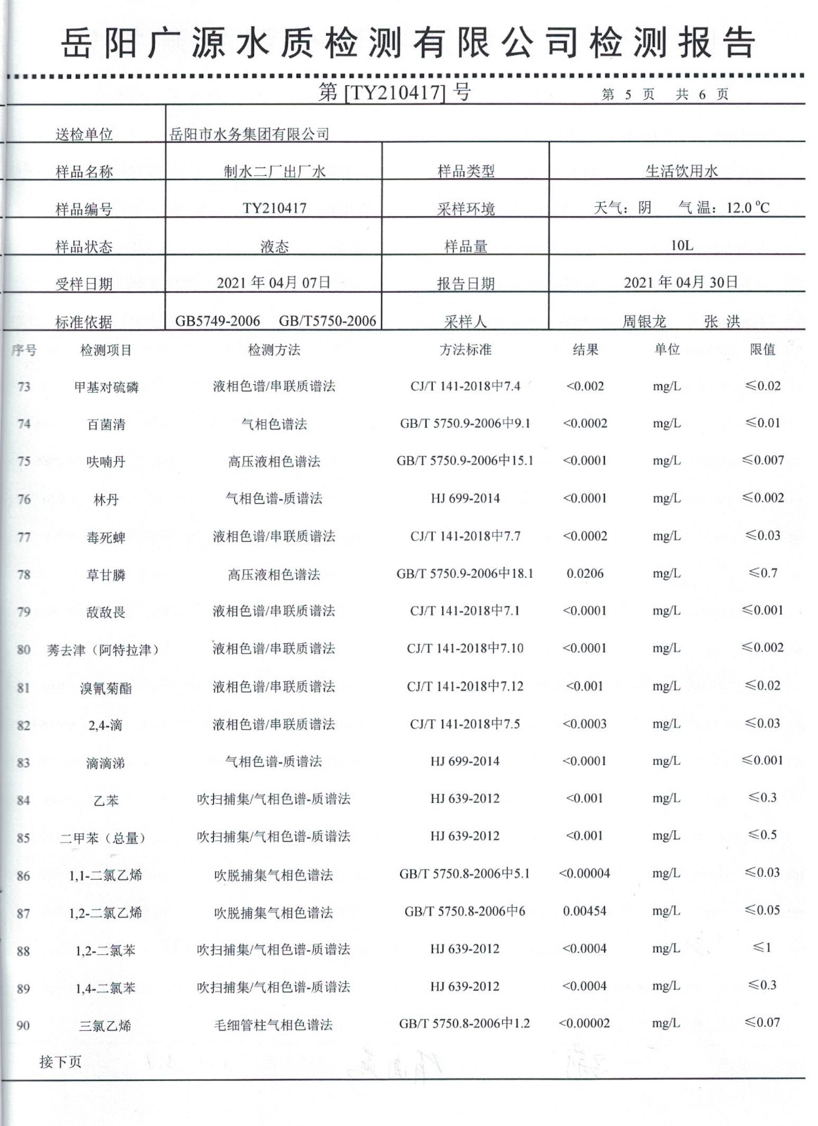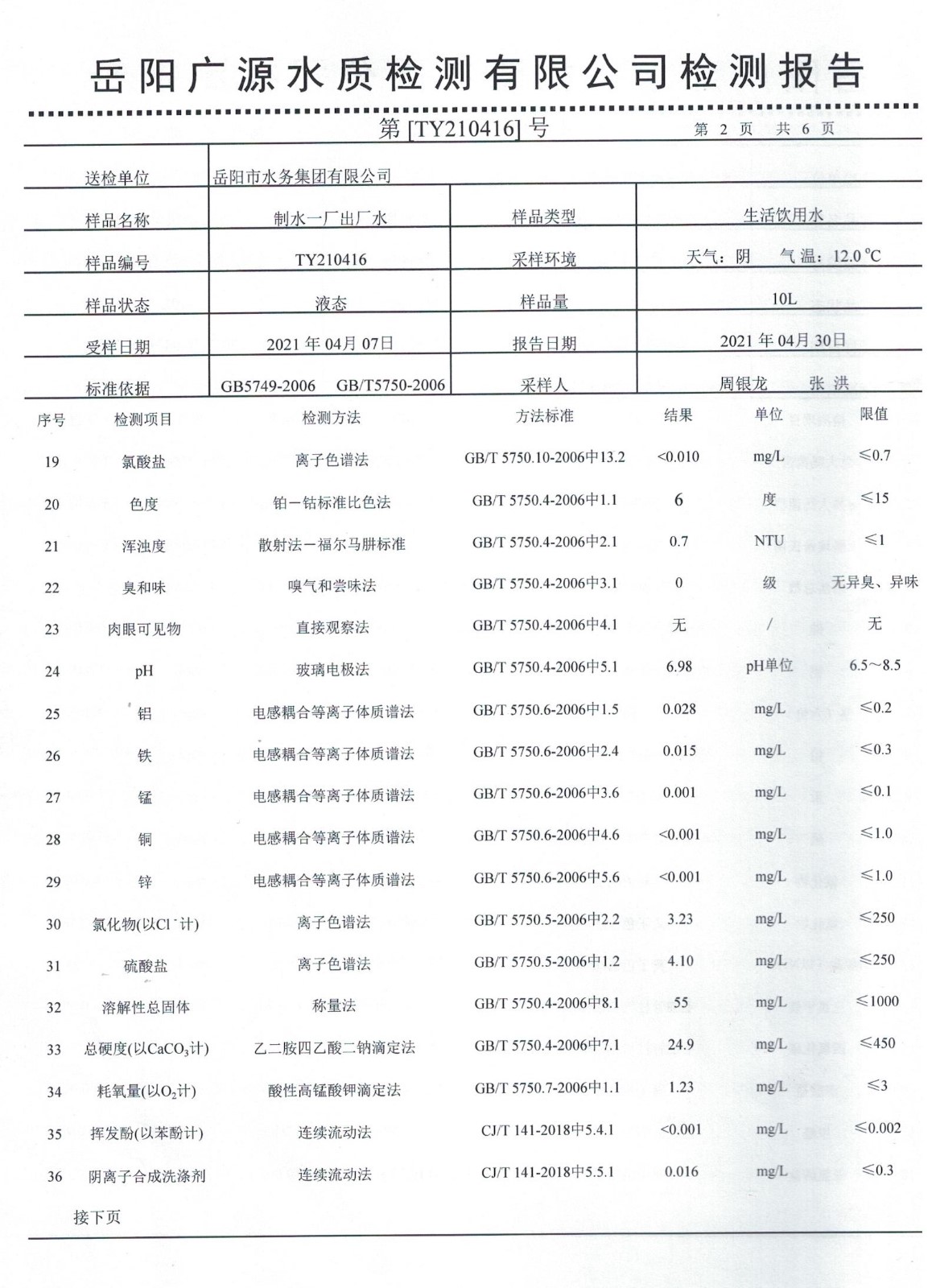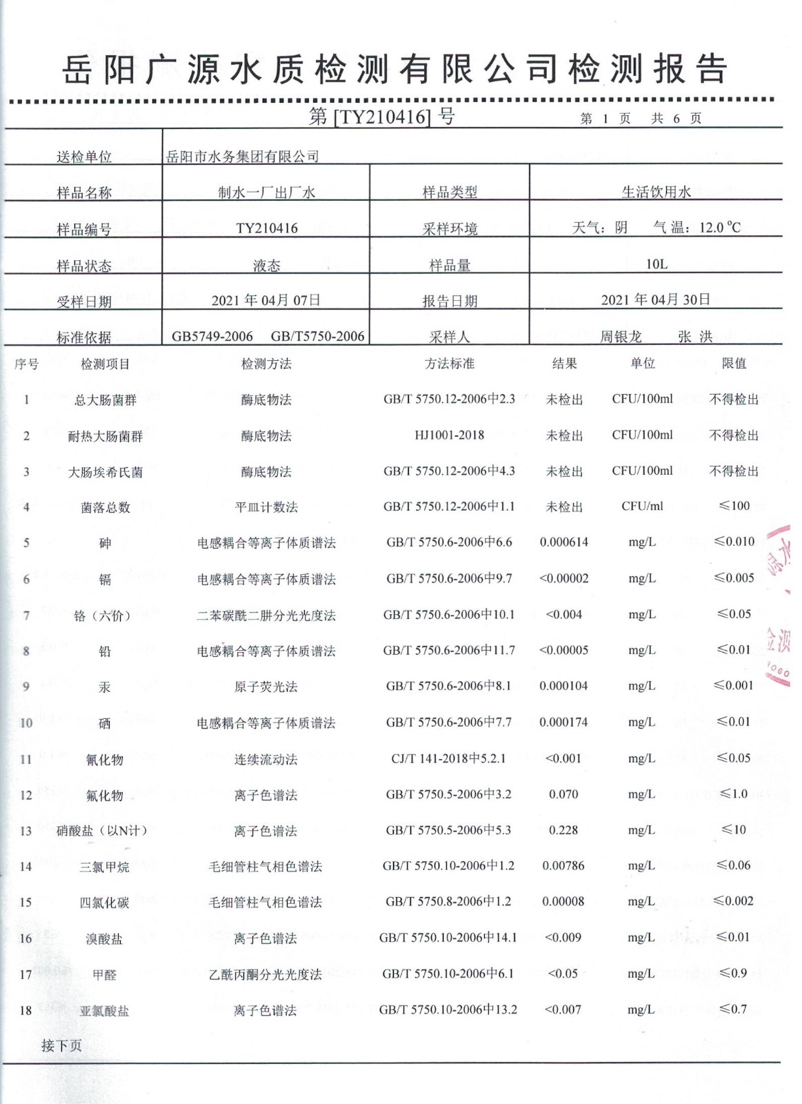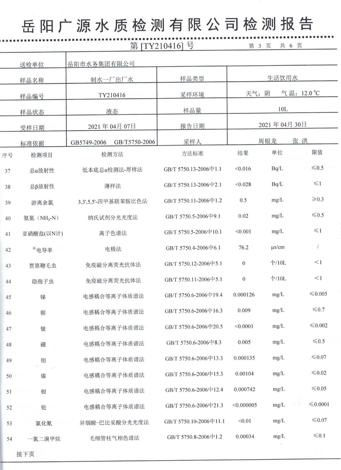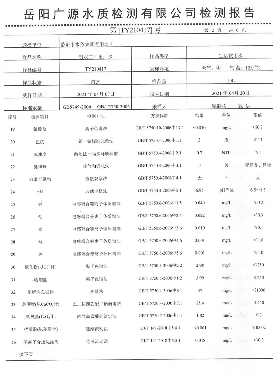 上一篇:2021年04月岳陽(yáng)市水務(wù)集團(tuán)管網(wǎng)水水質(zhì)檢測(cè)月報(bào)表