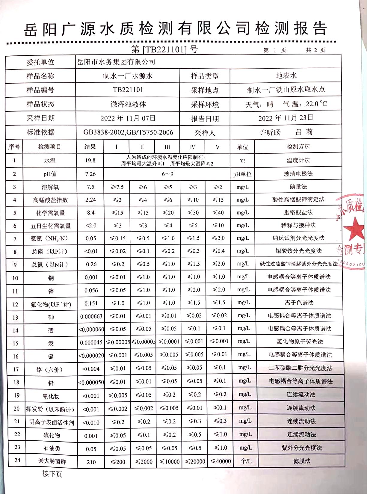 下一篇:2022年10月岳陽市水務(wù)集團(tuán)管網(wǎng)水水質(zhì)檢測(cè)月報(bào)表