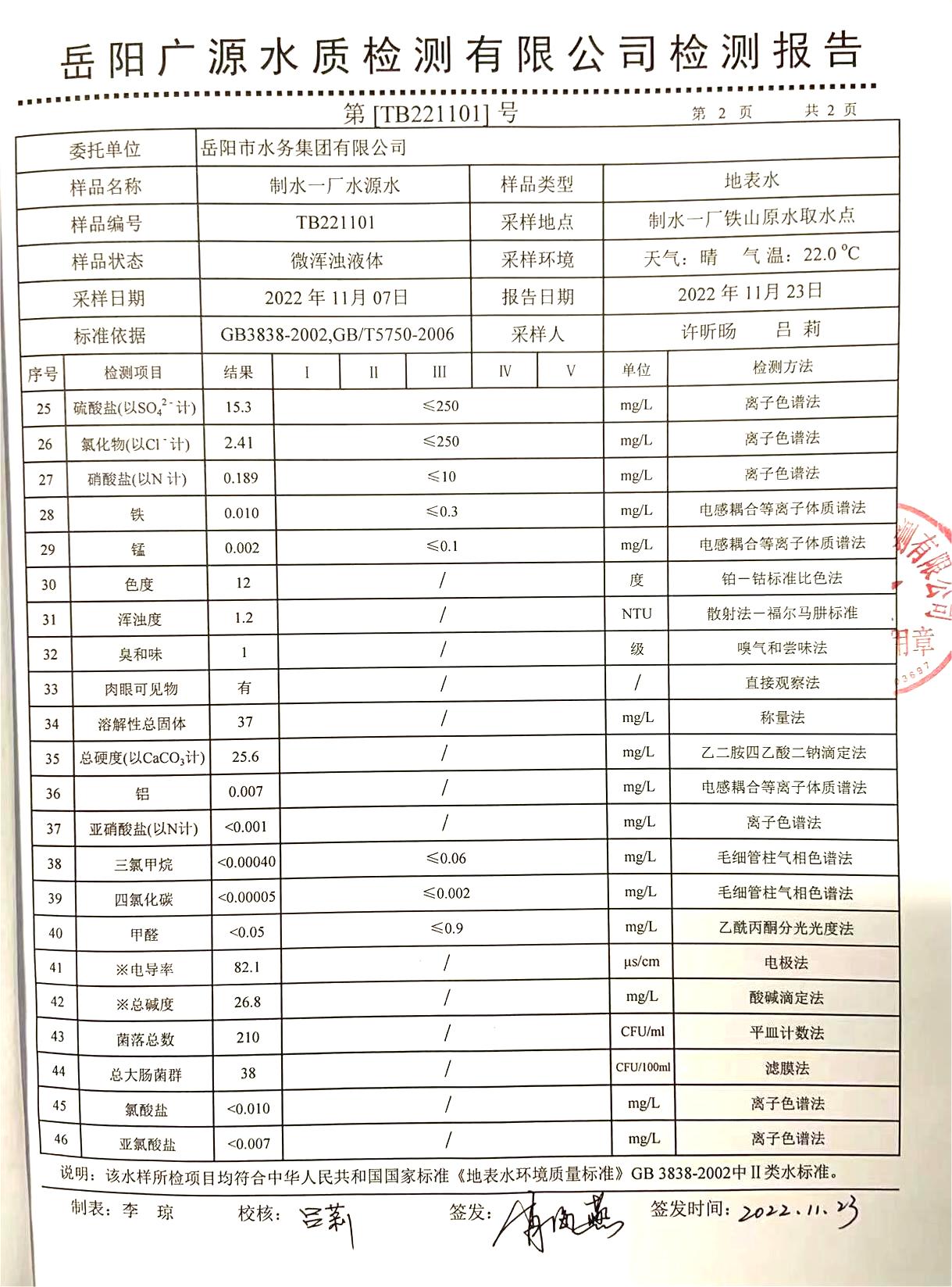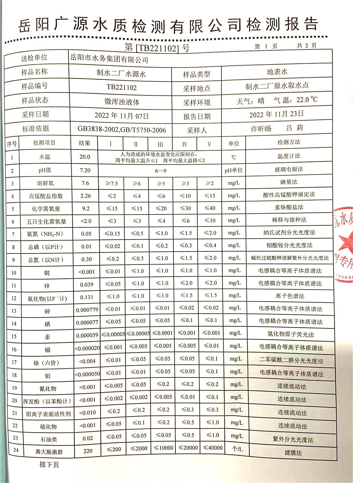 上一篇:2022年11月岳陽市水務(wù)集團(tuán)出廠水水質(zhì)檢測(cè)月報(bào)表