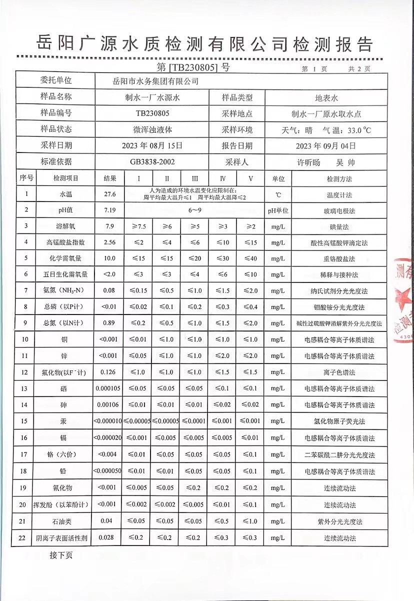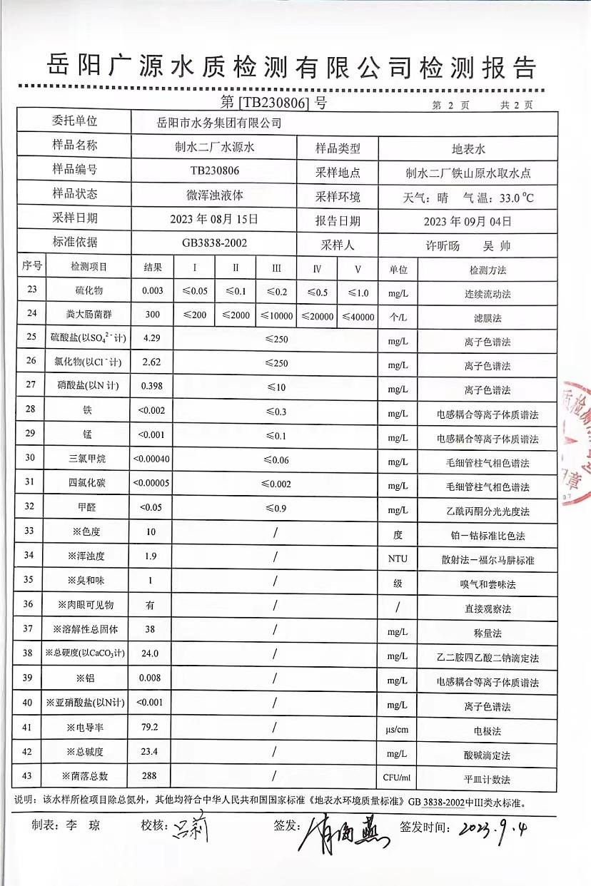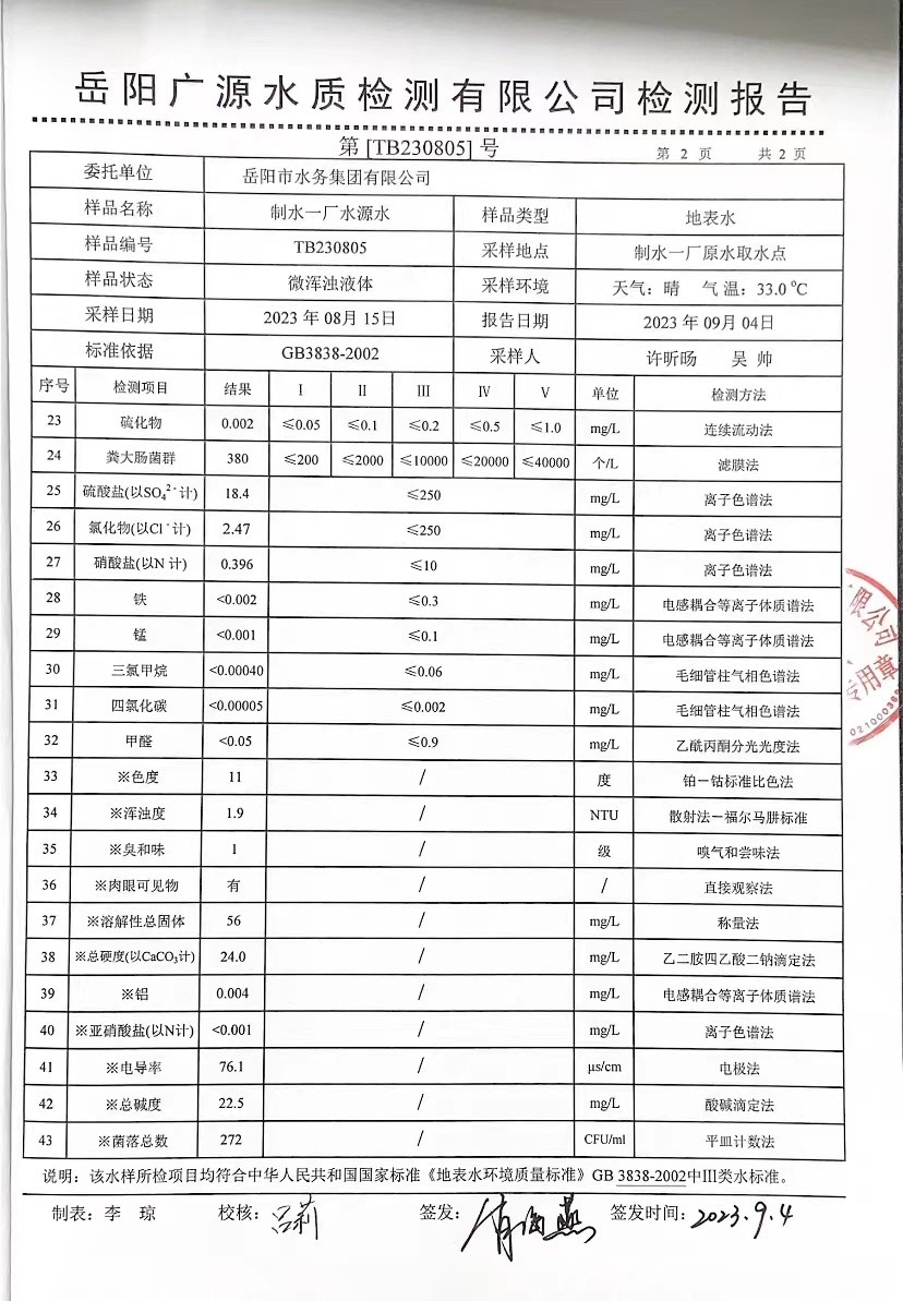 下一篇:2023年8月岳陽市水務(wù)集團(tuán)出廠水水質(zhì)檢測月報(bào)表