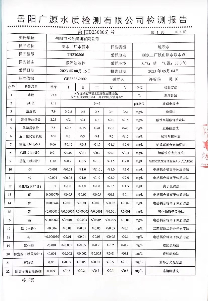 上一篇:2023年8月岳陽市水務(wù)集團(tuán)管網(wǎng)水水質(zhì)檢測月報(bào)表