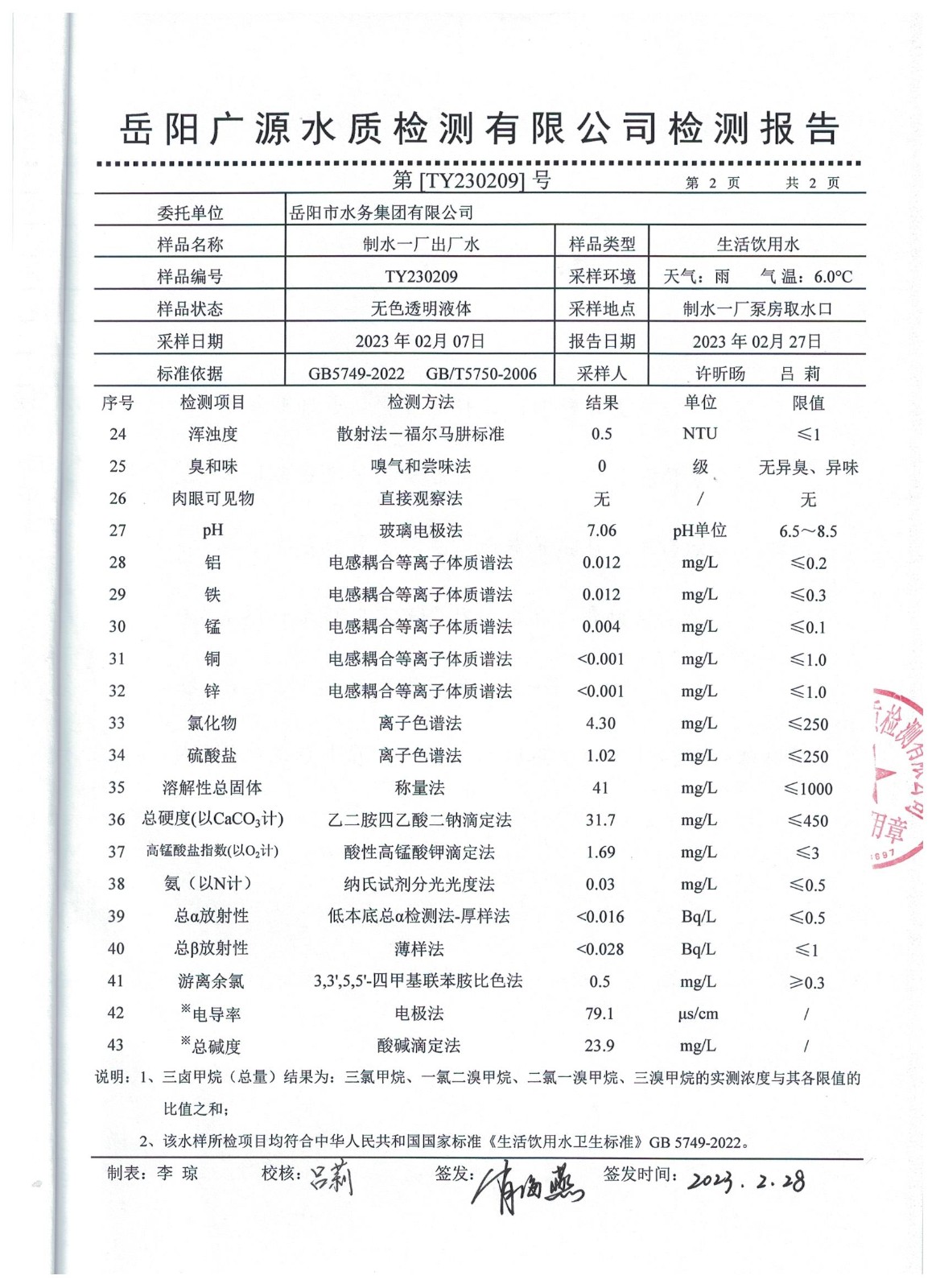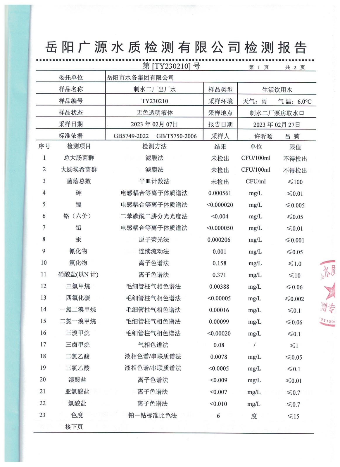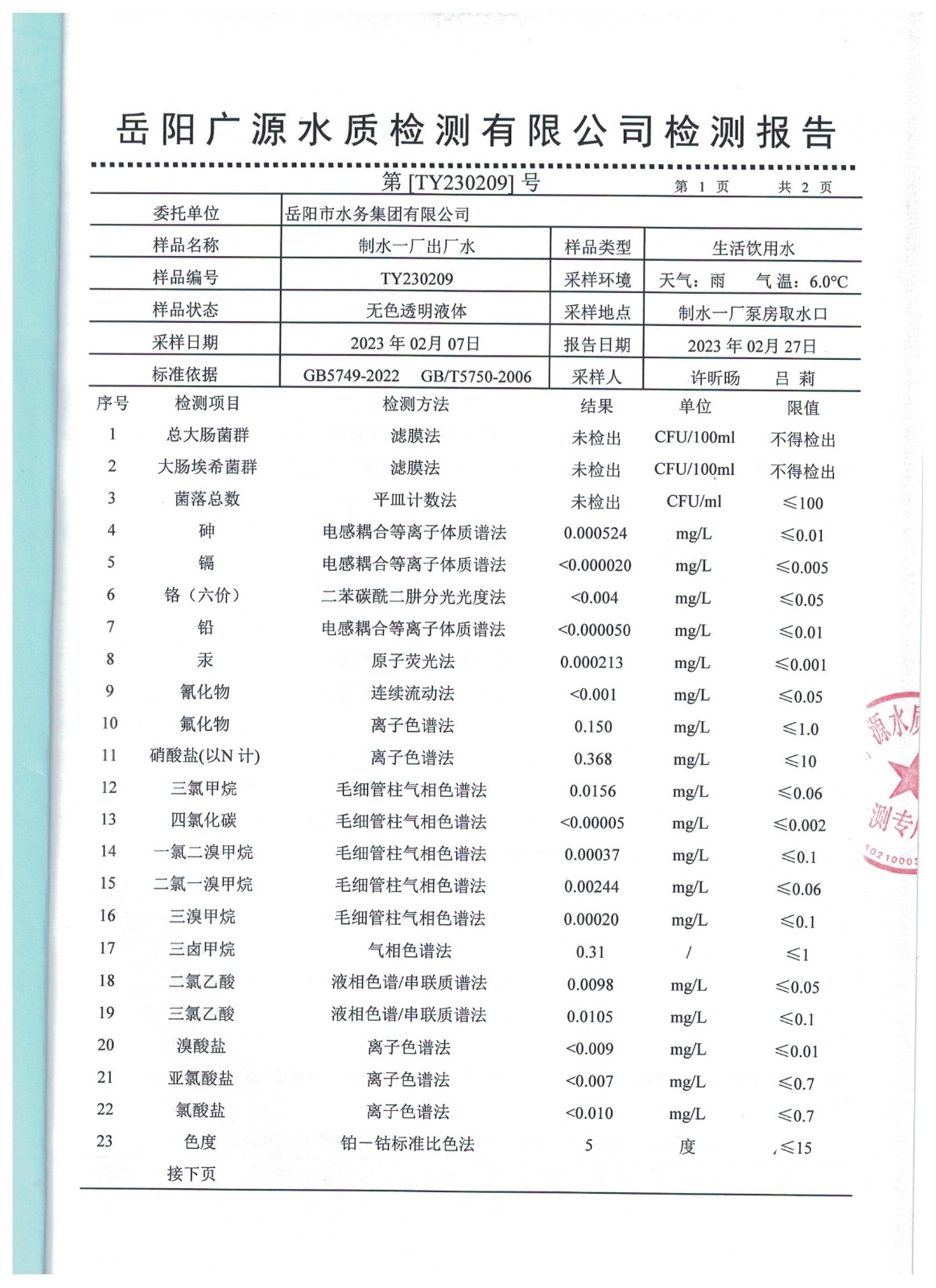 下一篇:2023年2月岳陽市水務(wù)集團(tuán)水源水水質(zhì)檢測(cè)月報(bào)表