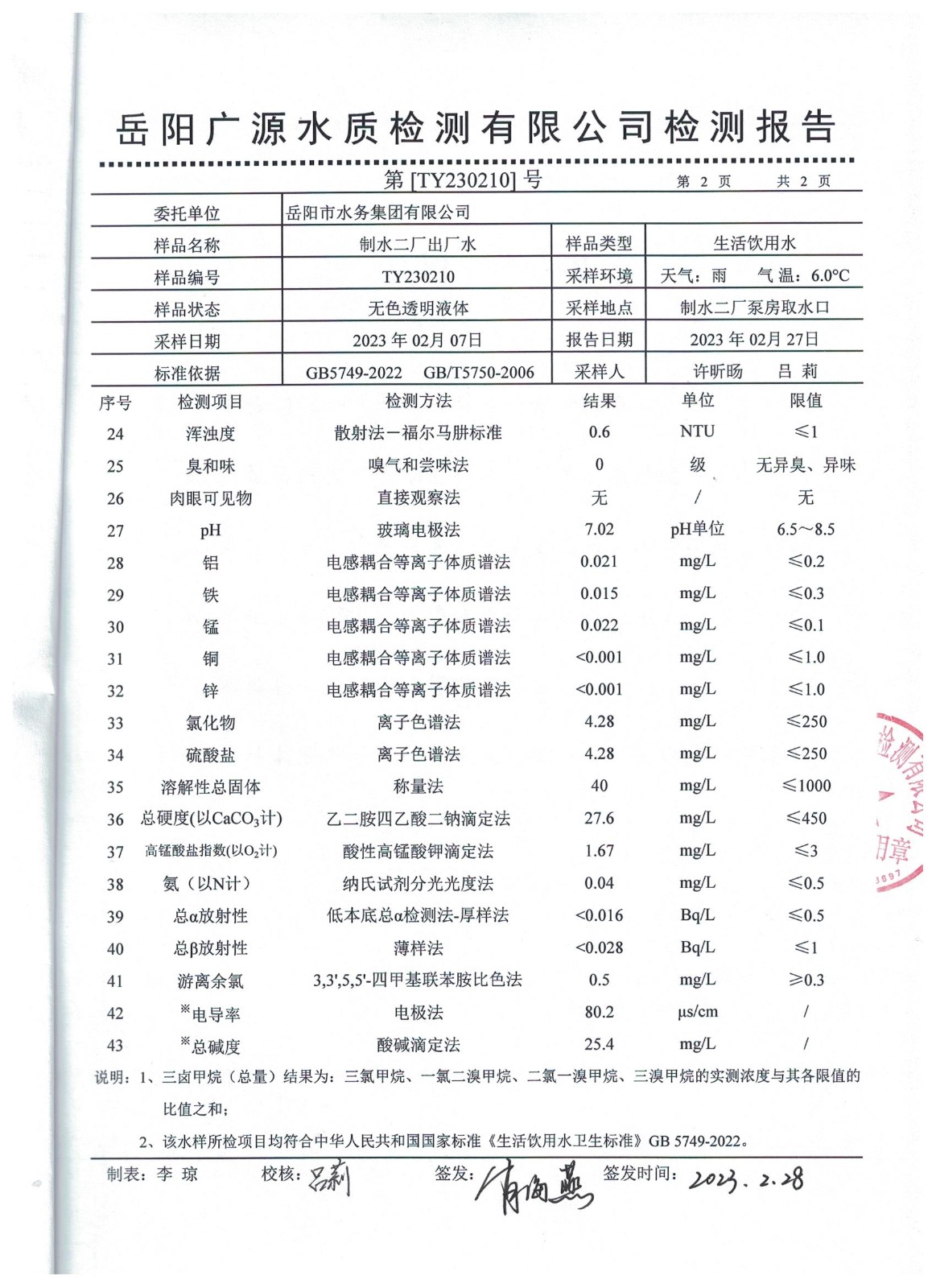 上一篇:2023年2月岳陽市水務(wù)集團(tuán)管網(wǎng)水水質(zhì)檢測(cè)月報(bào)表