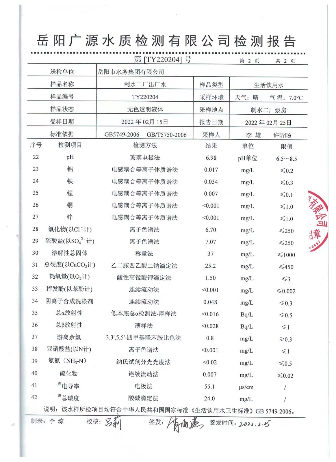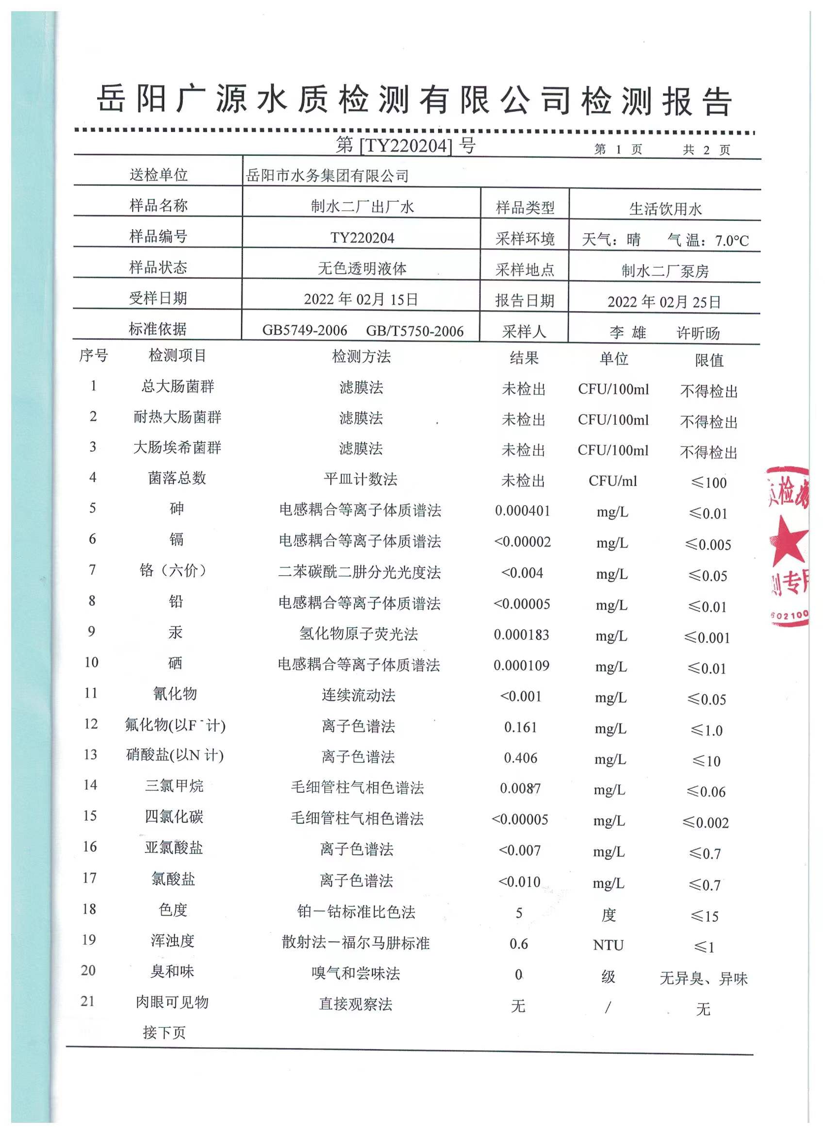 下一篇:2022年02月岳陽市水務(wù)集團(tuán)水源水水質(zhì)檢測月報表