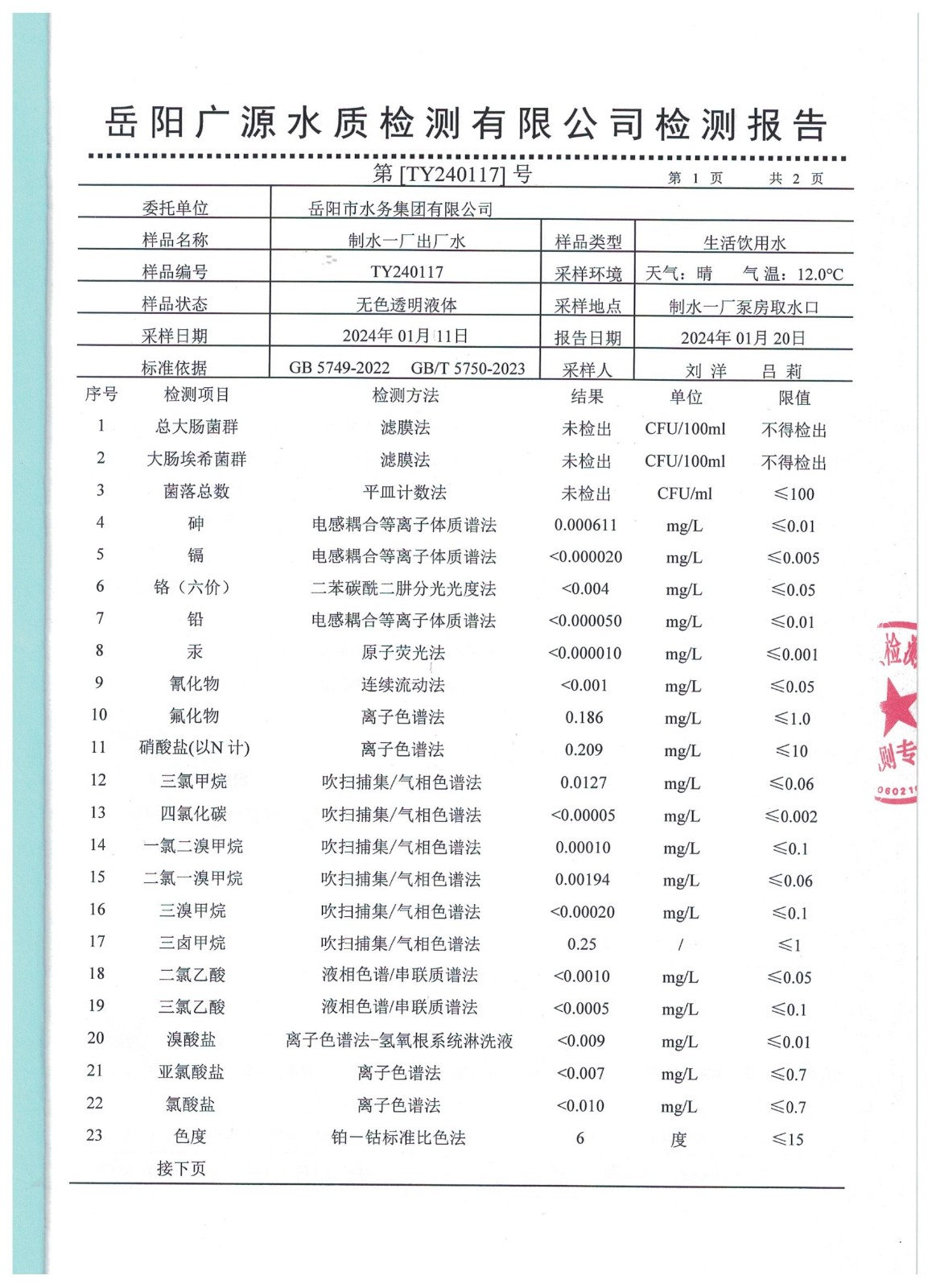 下一篇:2023年12月岳陽市水務(wù)集團(tuán)管網(wǎng)水水質(zhì)檢測月報(bào)表