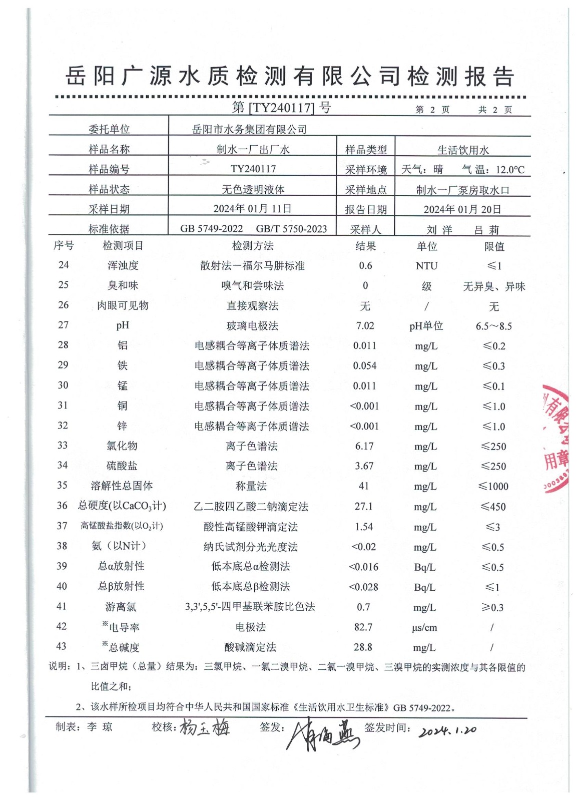 上一篇:2024年1月岳陽市水務(wù)集團(tuán)水源水水質(zhì)檢測月報(bào)表