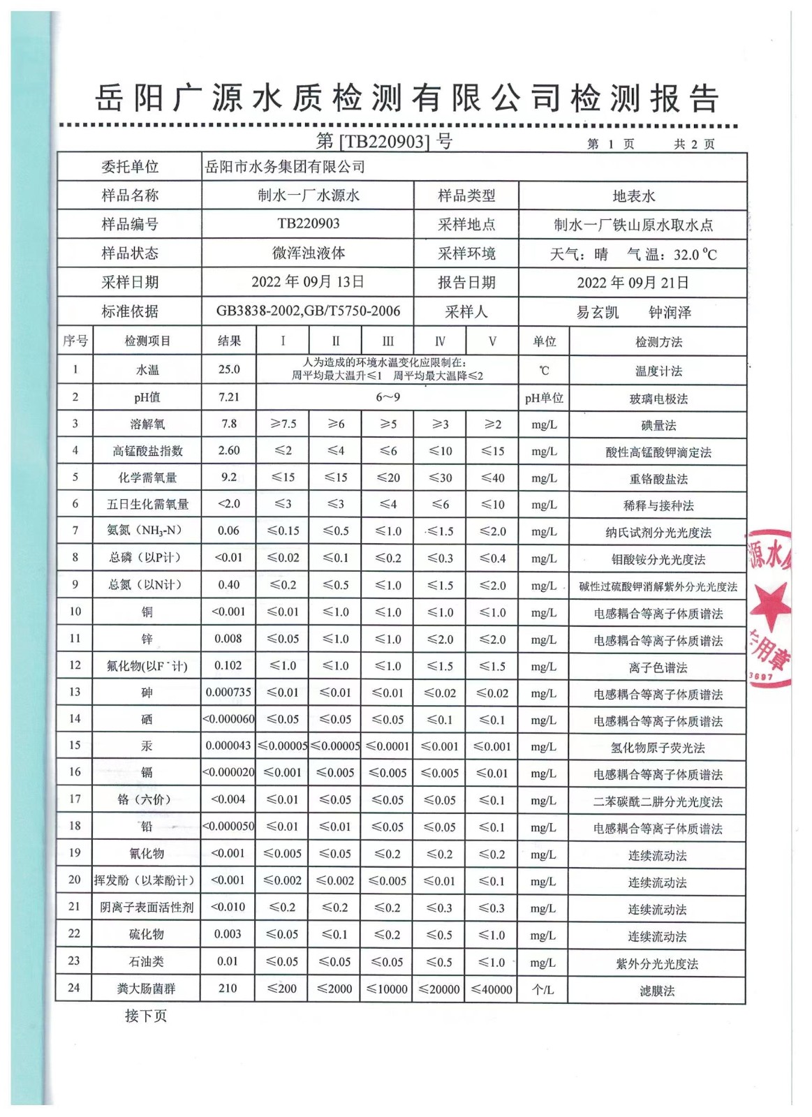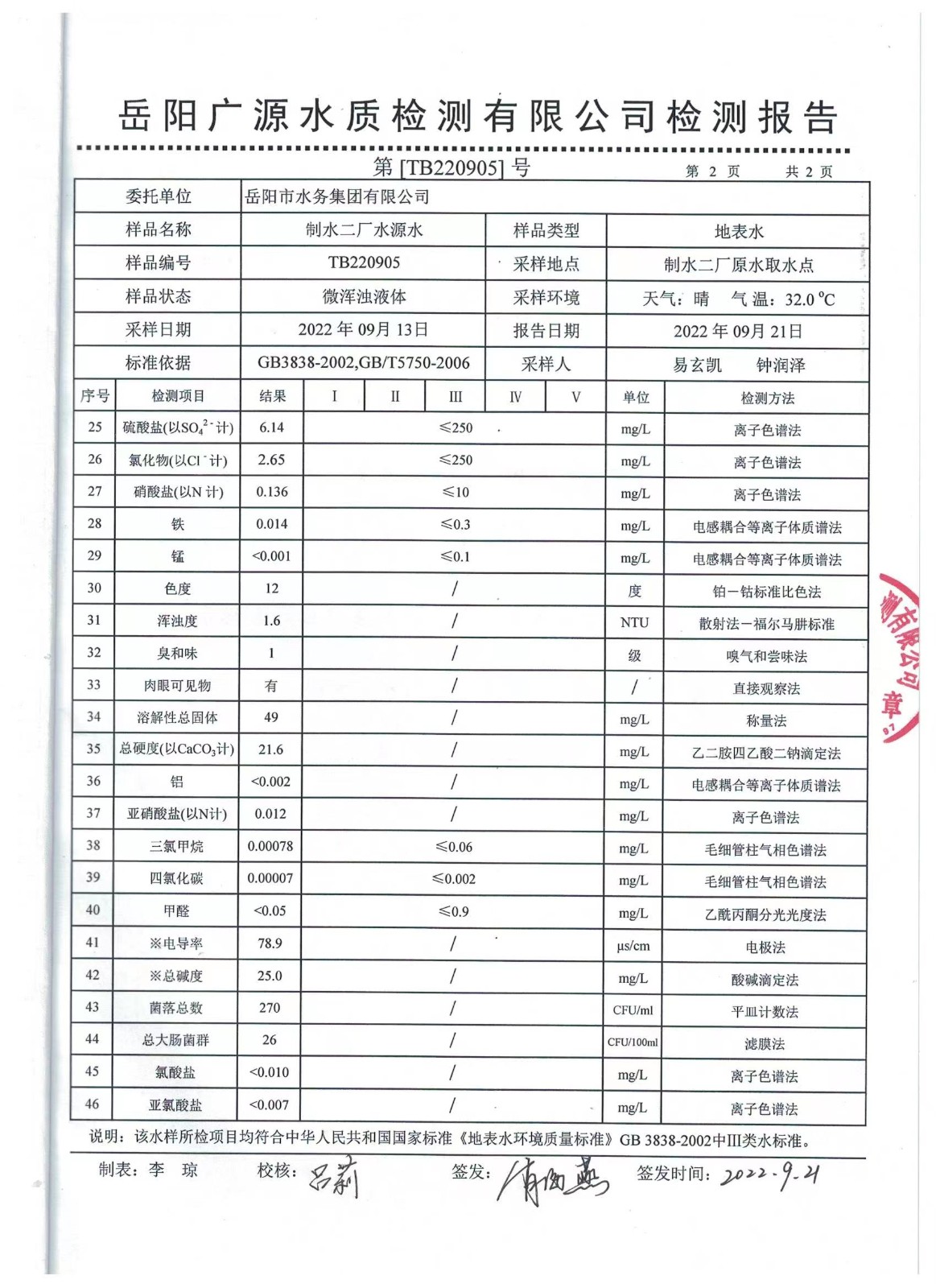 上一篇:2022年09月岳陽(yáng)市水務(wù)集團(tuán)出廠水水質(zhì)檢測(cè)月報(bào)表