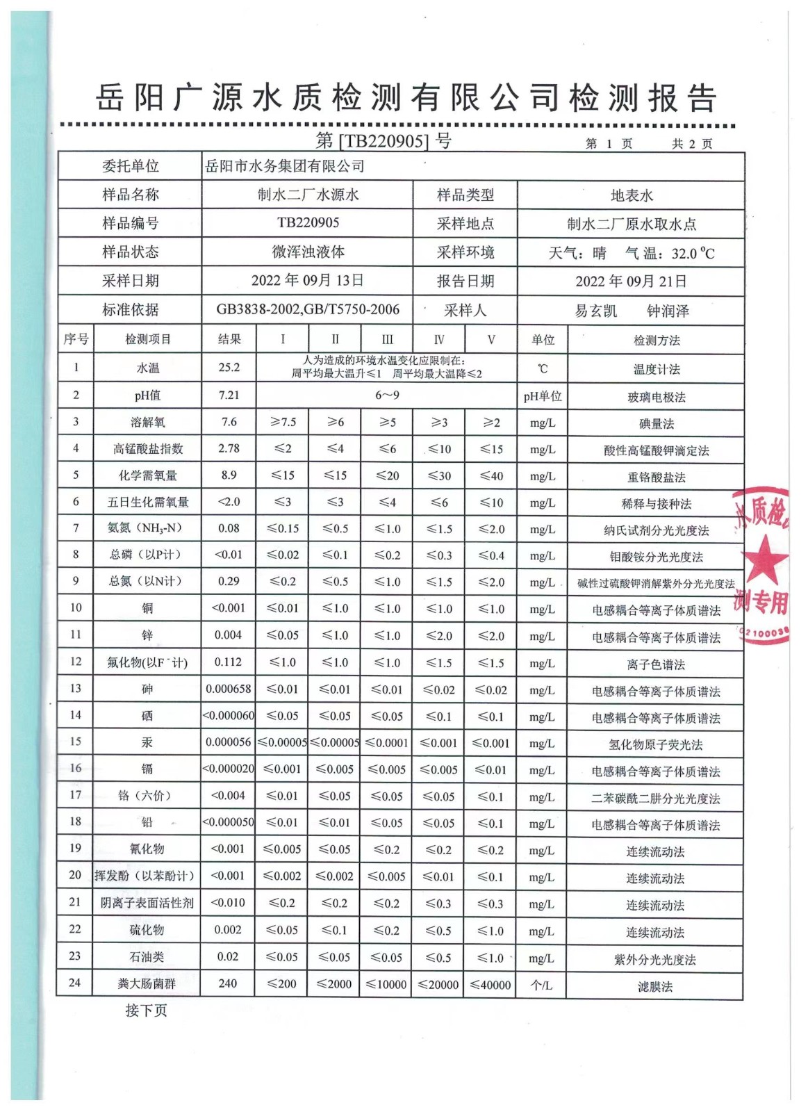 下一篇:2022年08月岳陽(yáng)市水務(wù)集團(tuán)管網(wǎng)水水質(zhì)檢測(cè)月報(bào)表