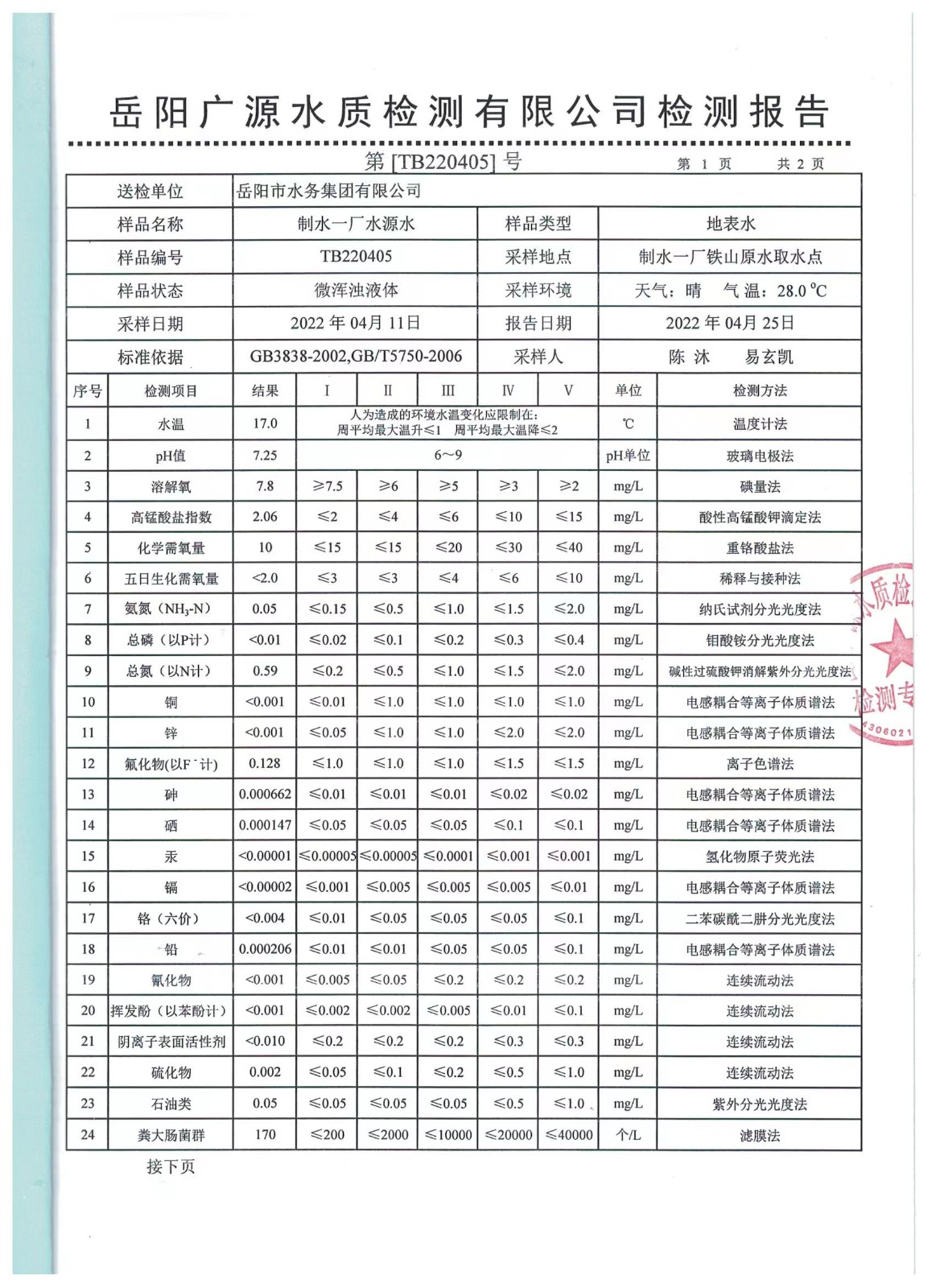 下一篇:2022年03月岳陽(yáng)市水務(wù)集團(tuán)管網(wǎng)水水質(zhì)檢測(cè)月報(bào)表