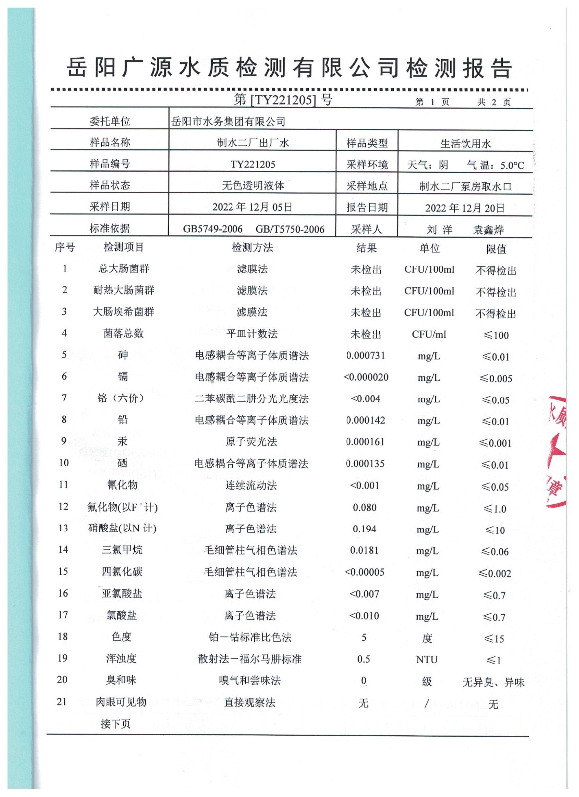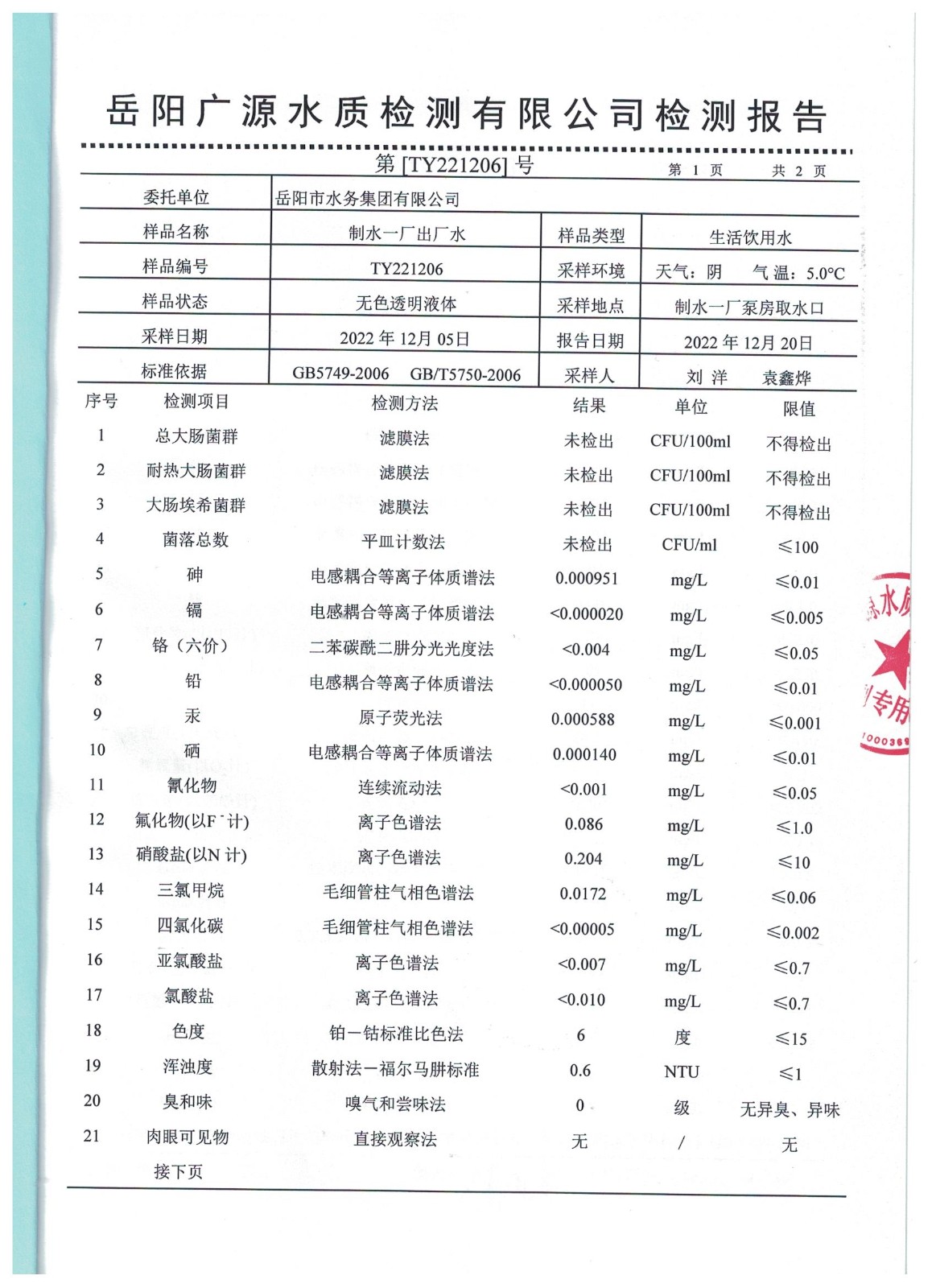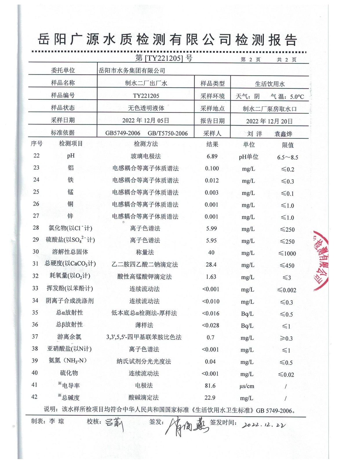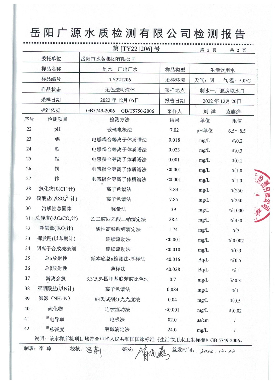 下一篇:2022年12月岳陽市水務集團水源水水質(zhì)檢測月報表