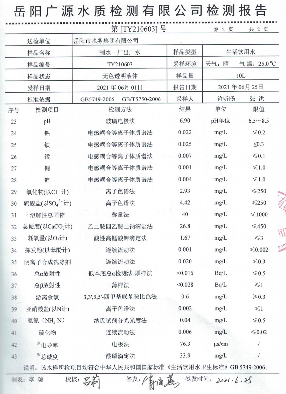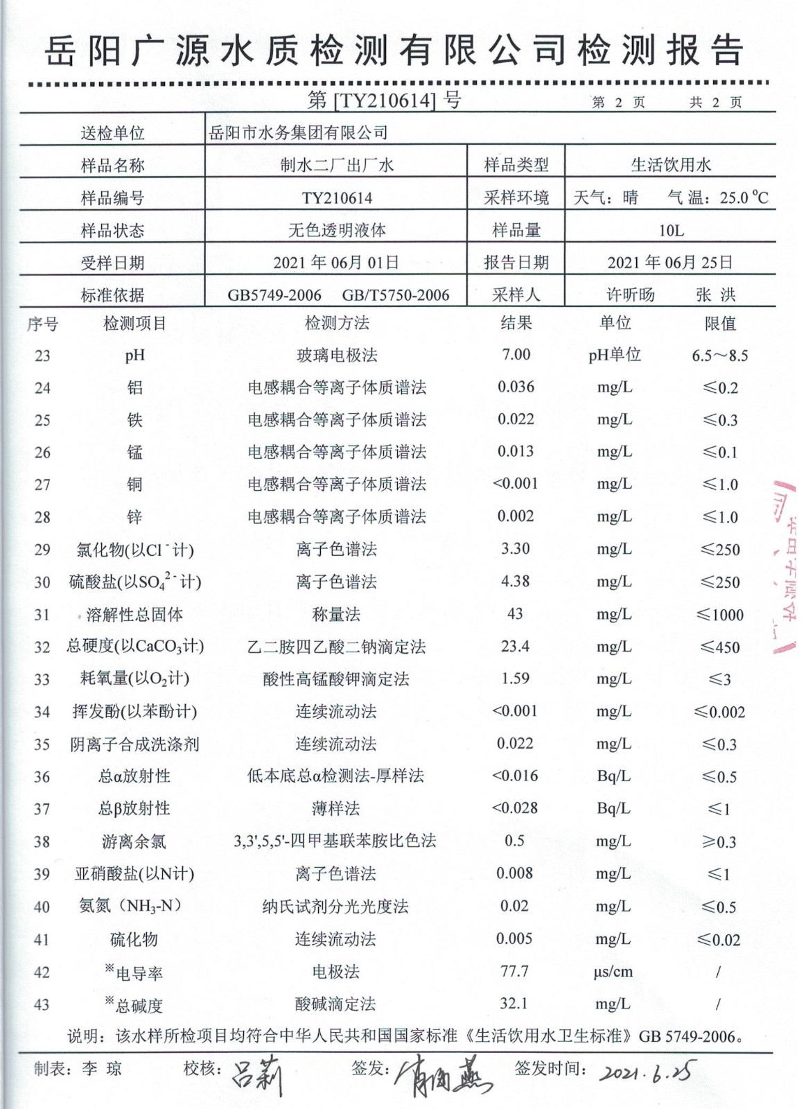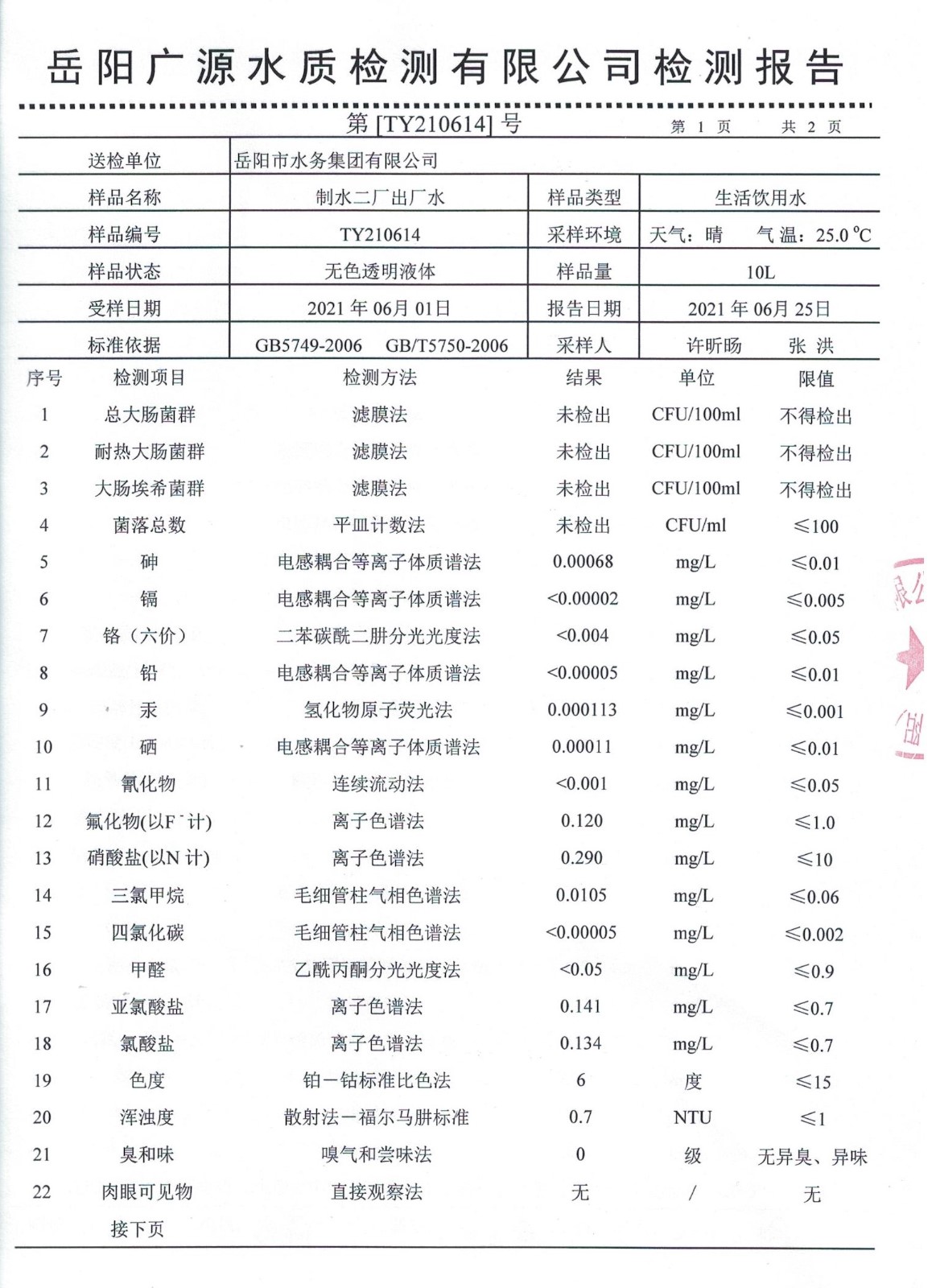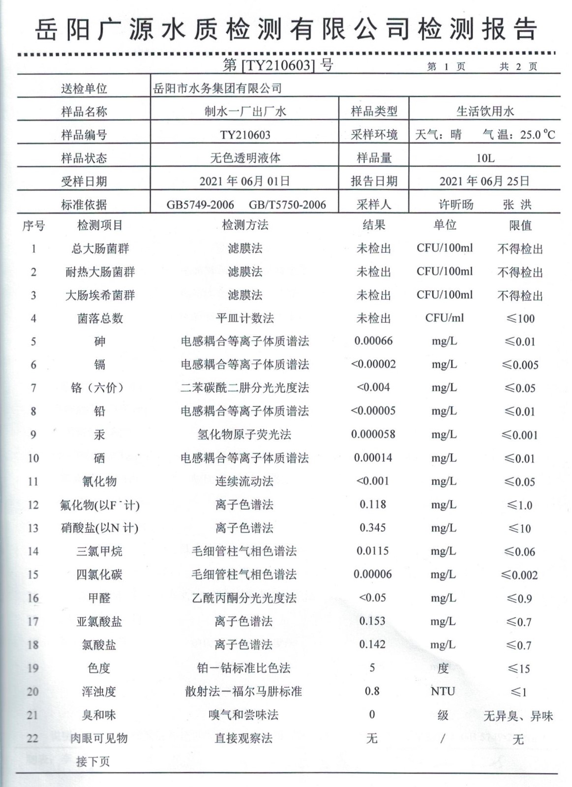 上一篇:2021年06月岳陽市水務集團管網(wǎng)水水質檢測月報表