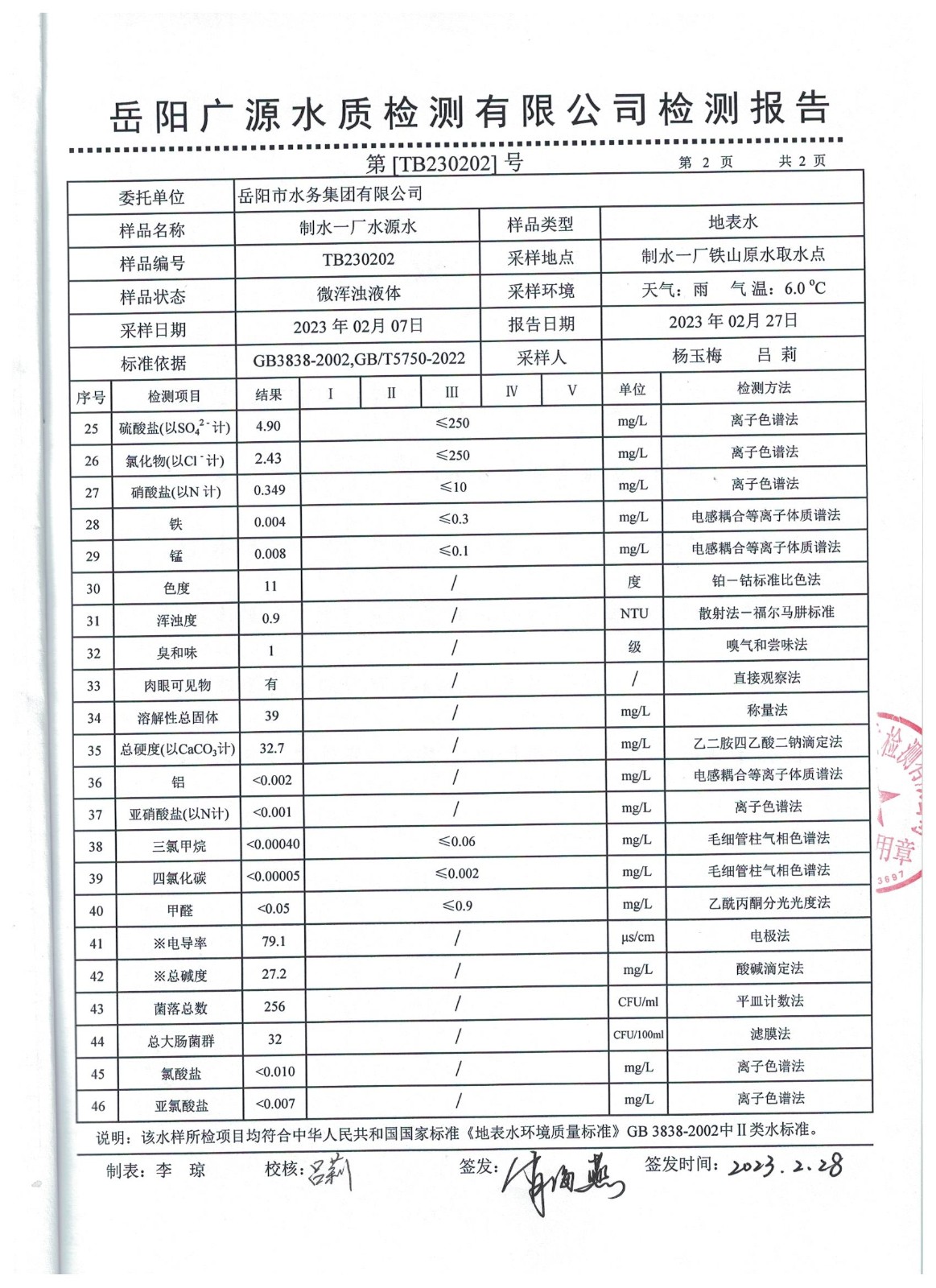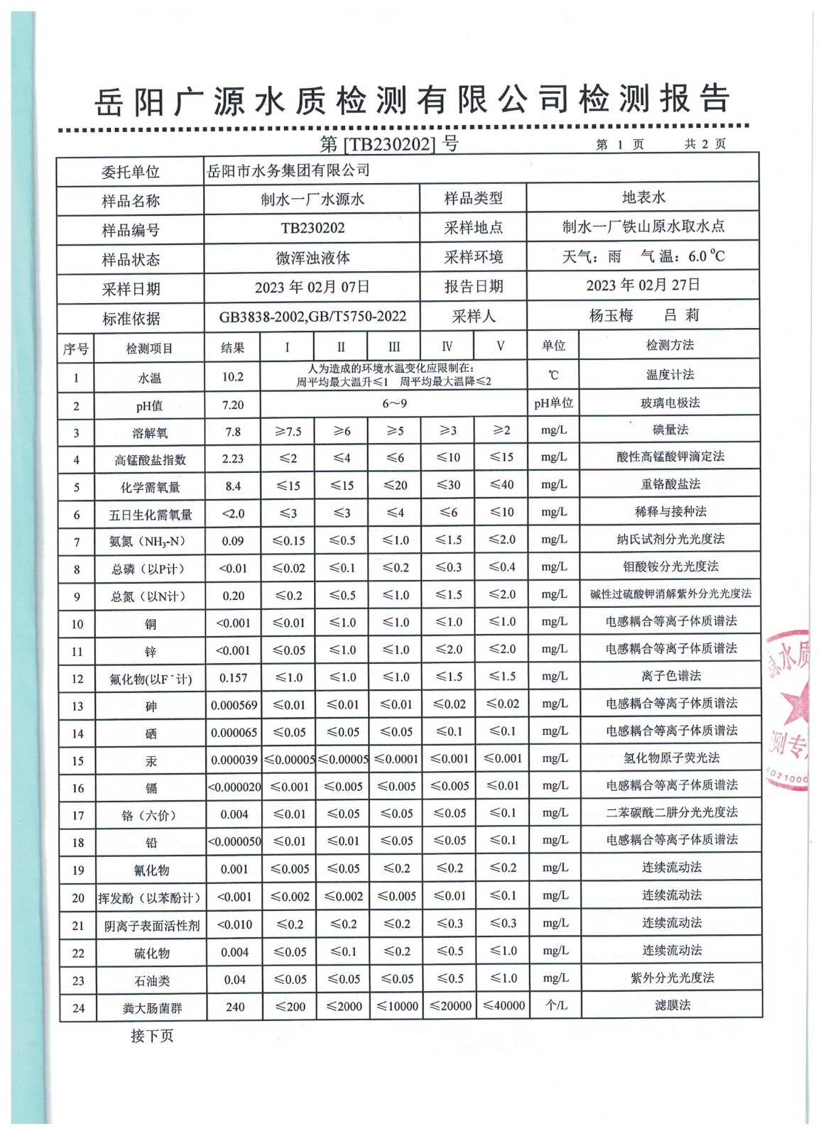下一篇:2023年1月岳陽(yáng)市水務(wù)集團(tuán)管網(wǎng)水水質(zhì)檢測(cè)月報(bào)表