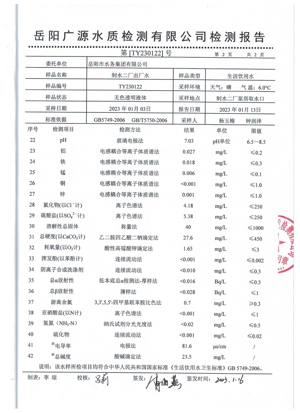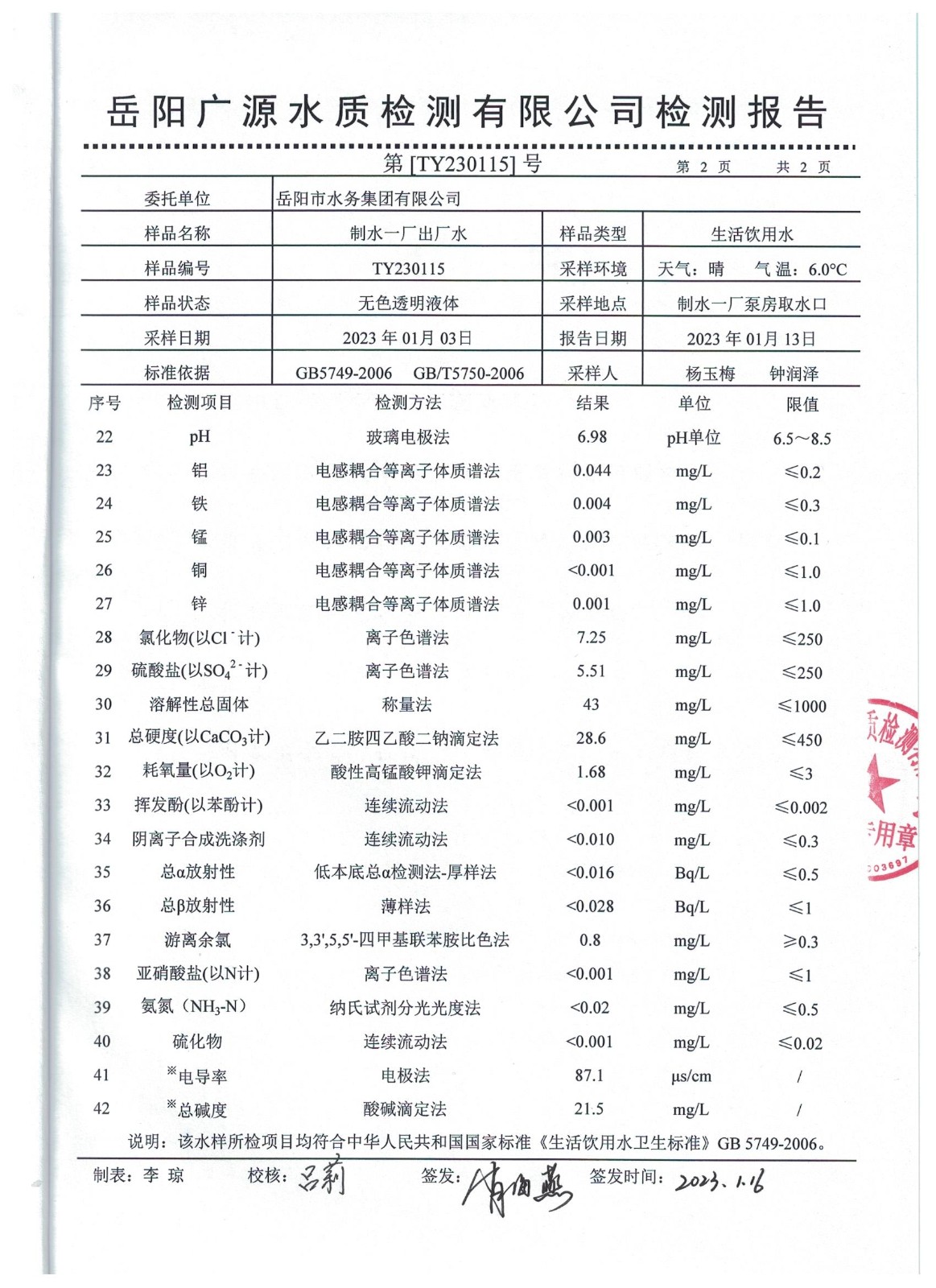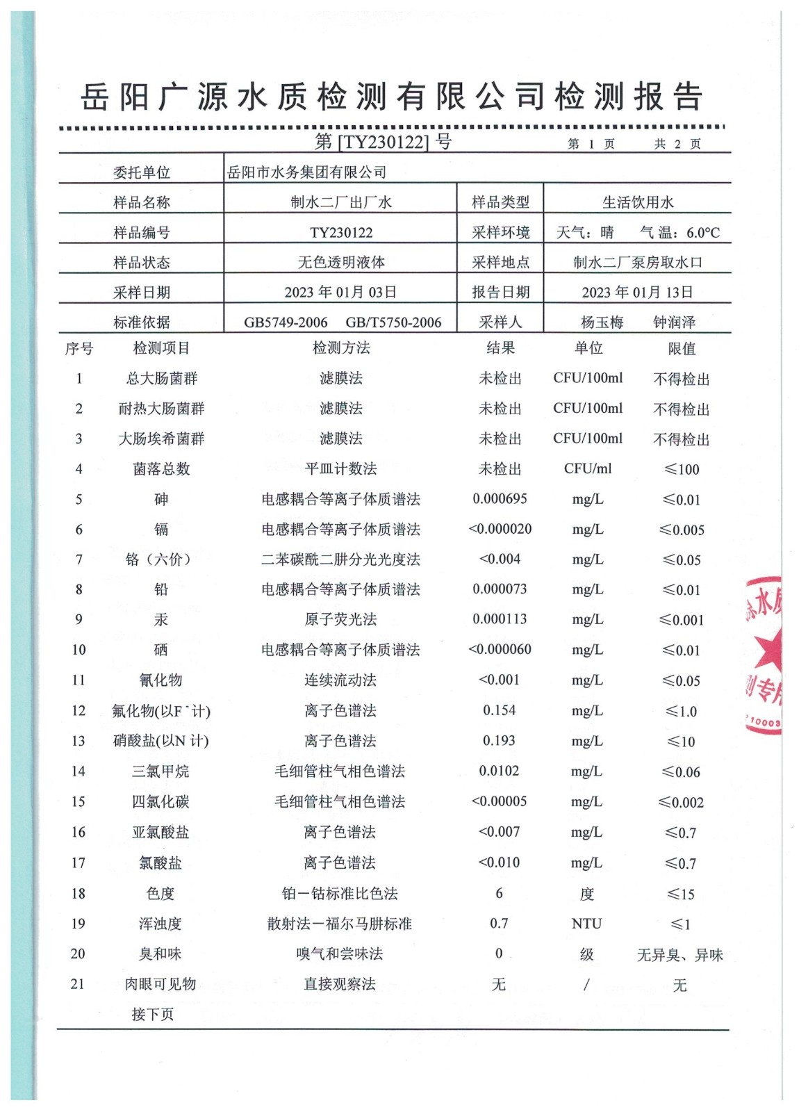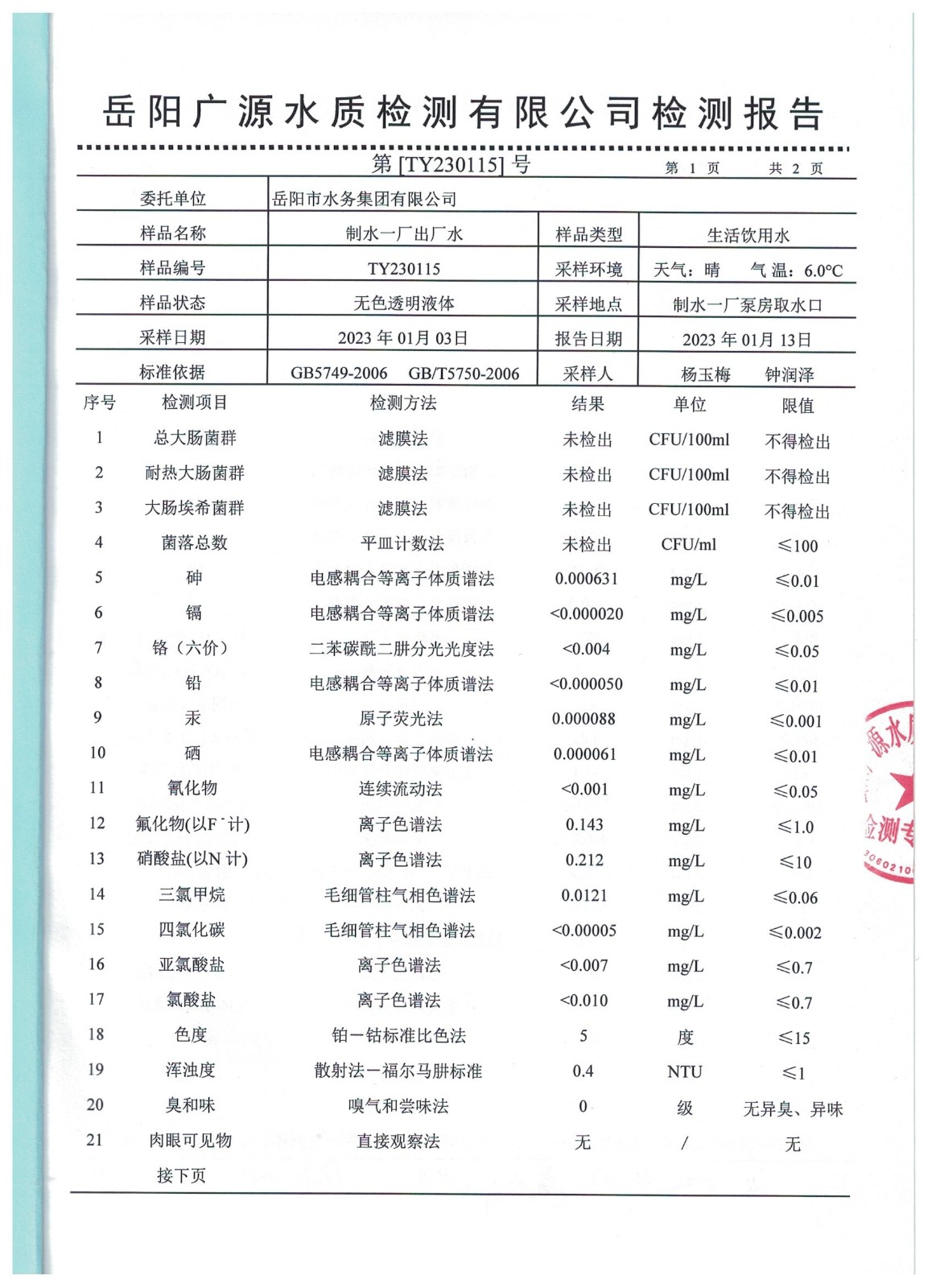 上一篇:2023年1月岳陽(yáng)市水務(wù)集團(tuán)管網(wǎng)水水質(zhì)檢測(cè)月報(bào)表