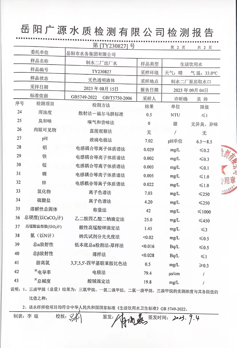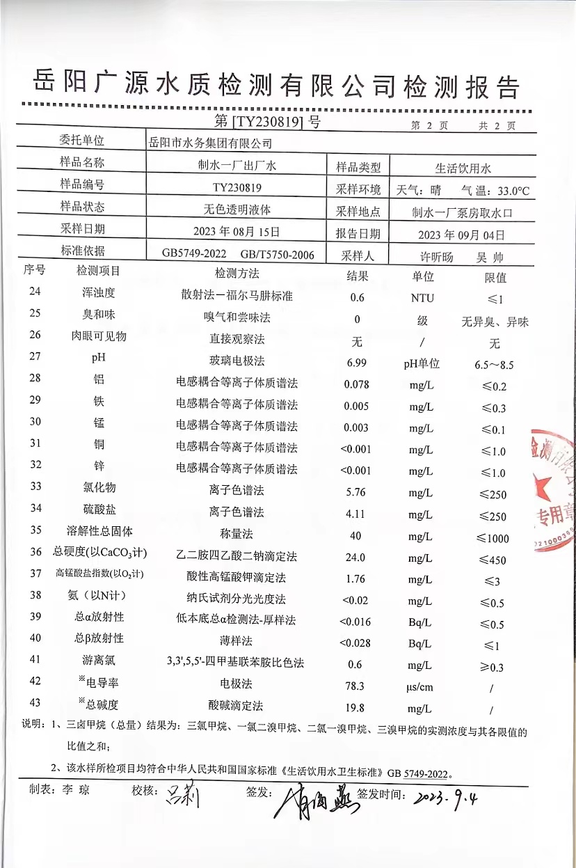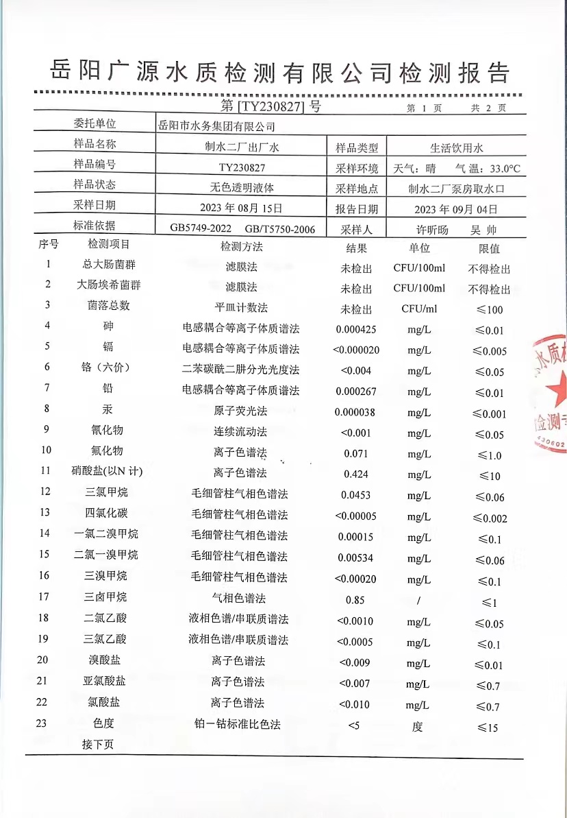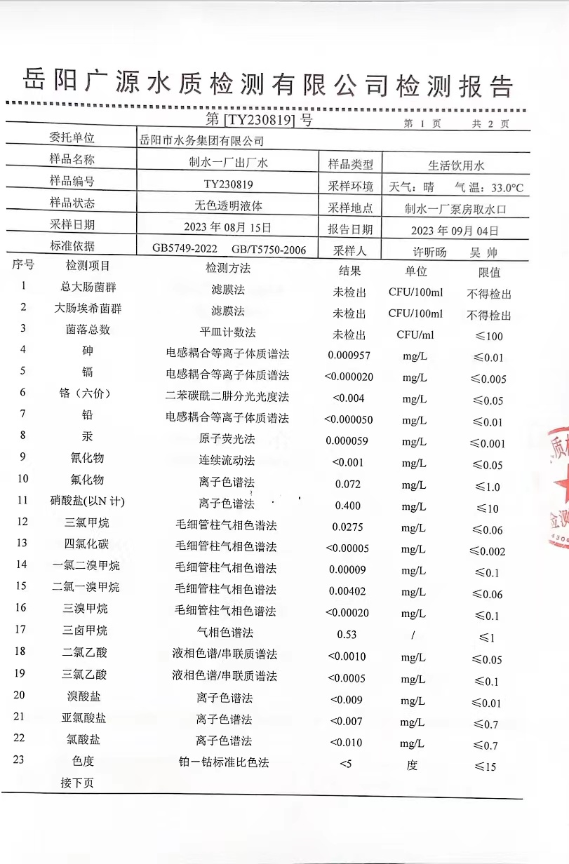 上一篇:2023年8月岳陽市水務(wù)集團(tuán)水源水水質(zhì)檢測月報表