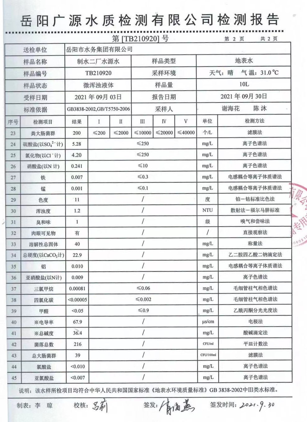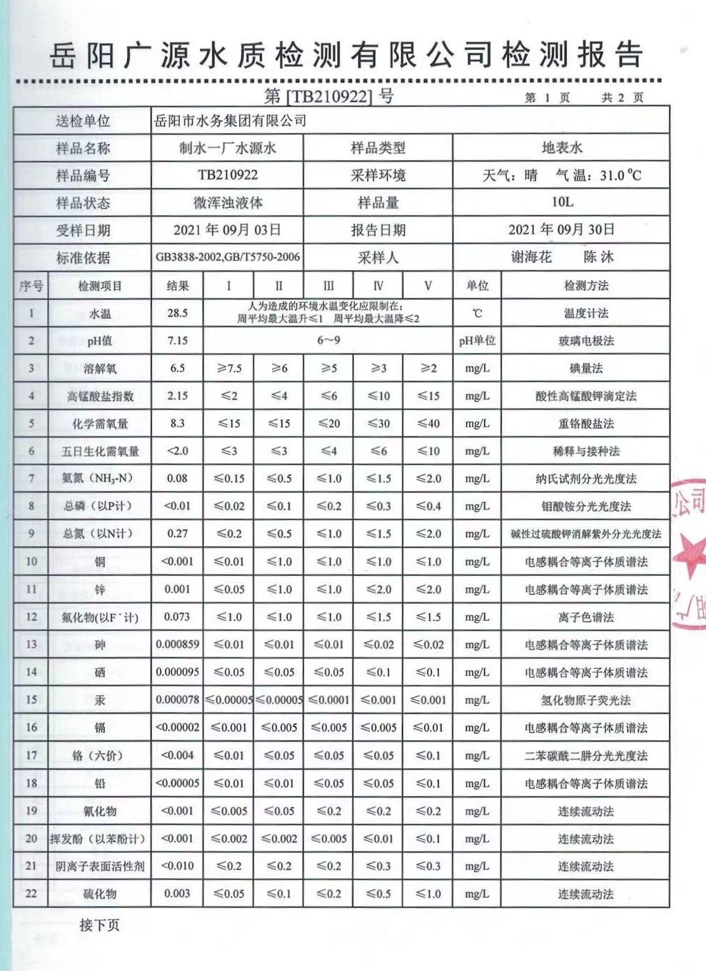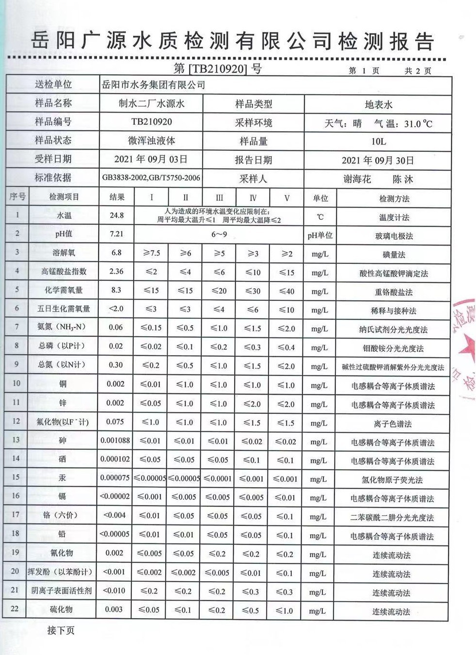 上一篇:2021年09月岳陽市水務(wù)集團(tuán)出廠水水質(zhì)檢測月報表