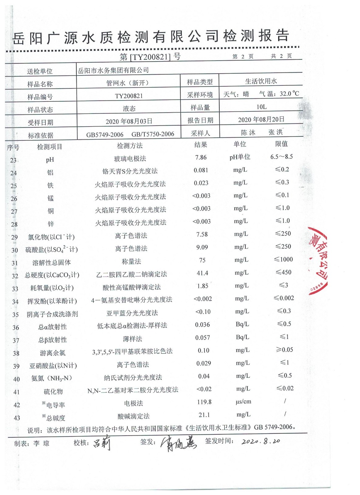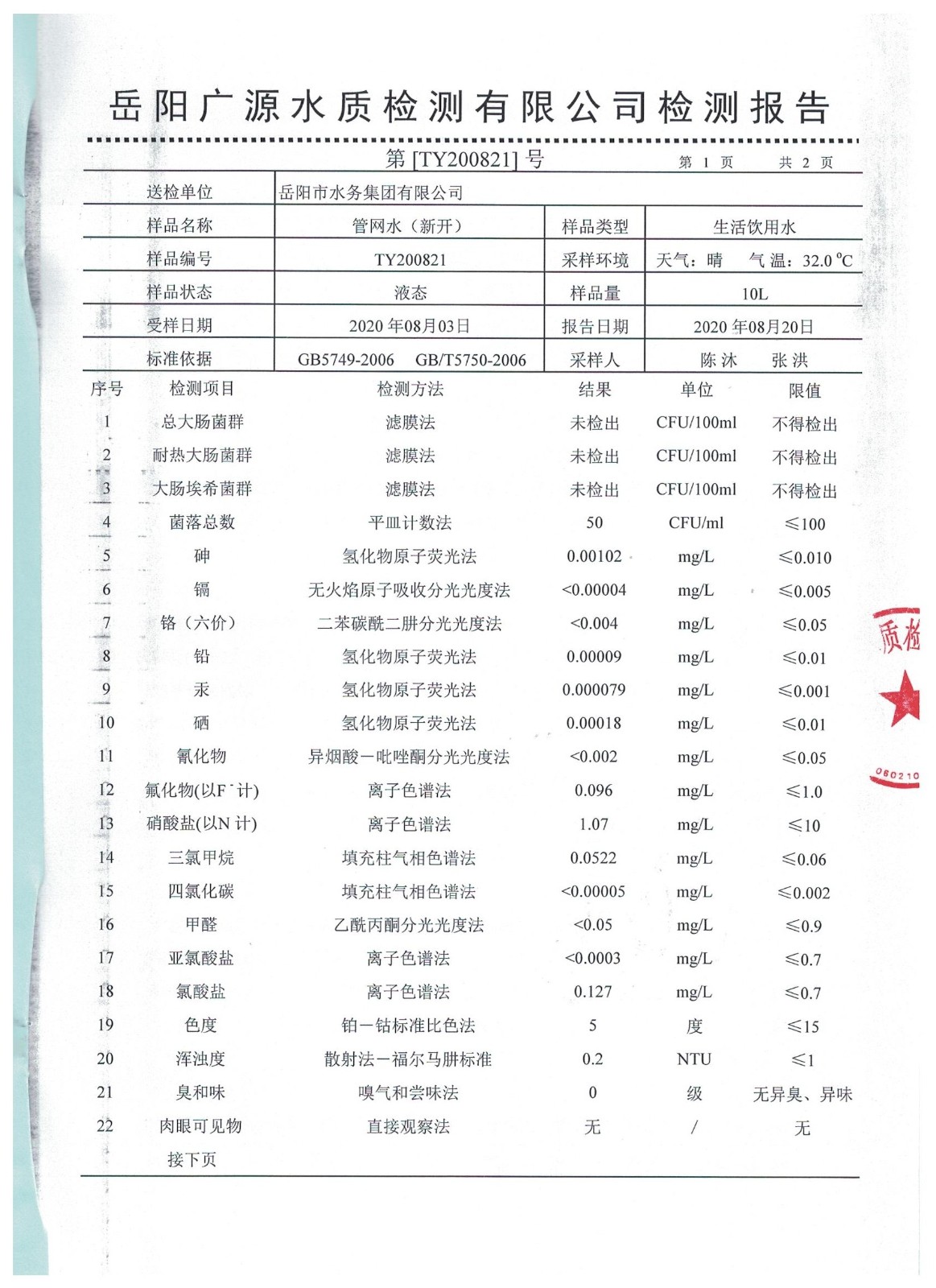 下一篇:2020年8月岳陽市水務(wù)集團(tuán)水源水水質(zhì)檢測(cè)月報(bào)表