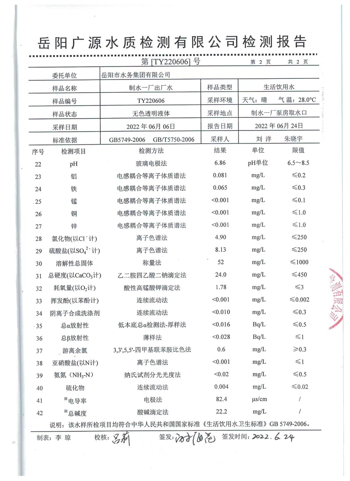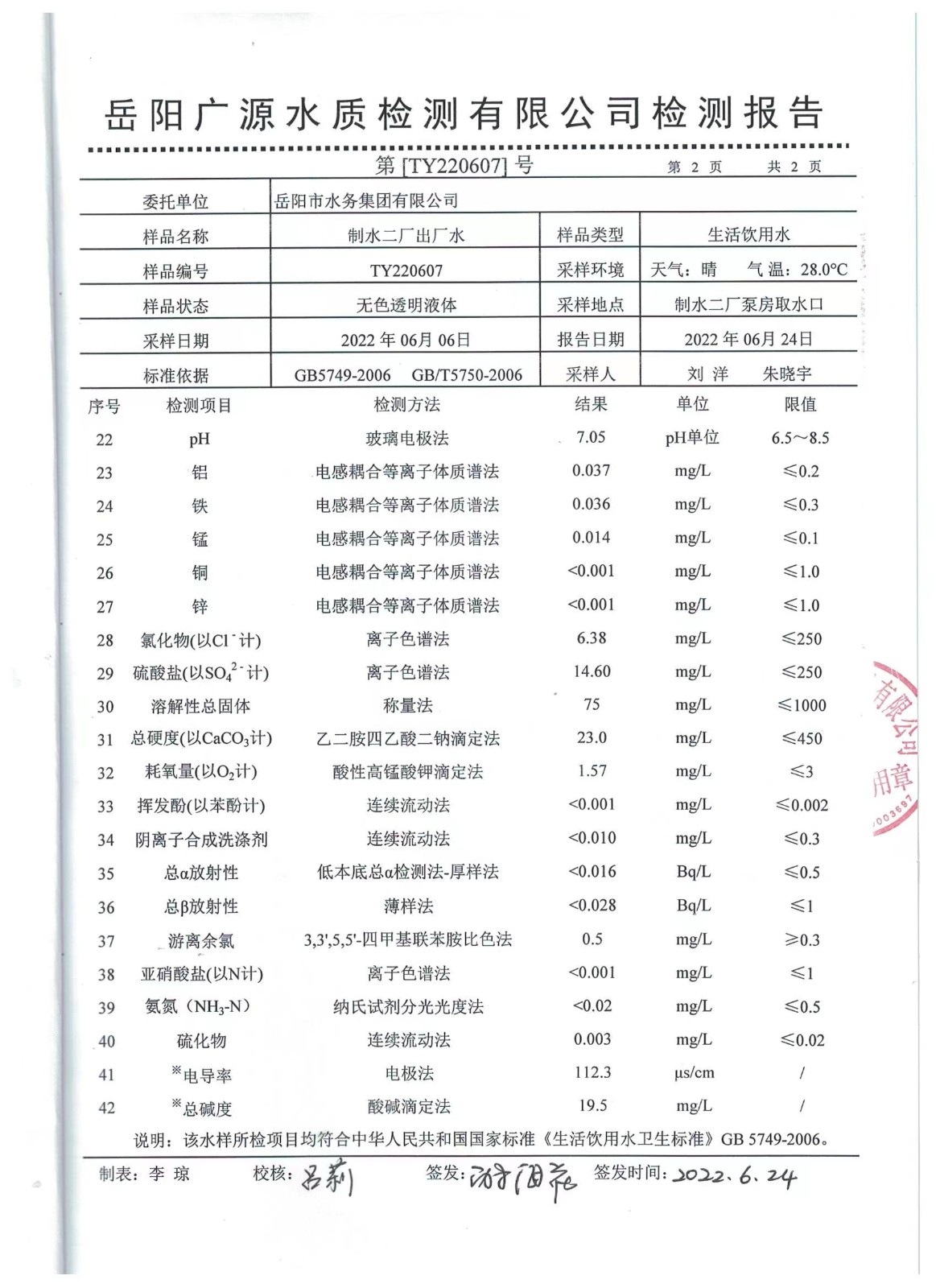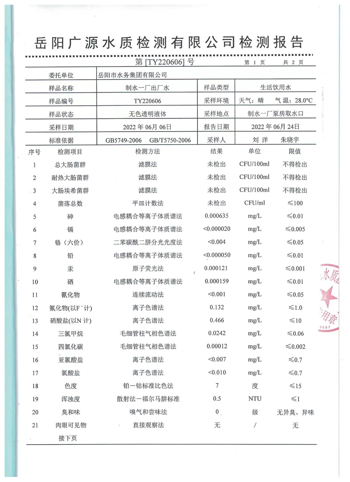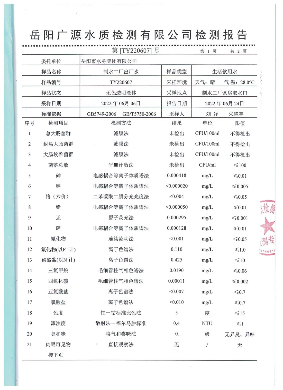 上一篇:2022年06月岳陽(yáng)市水務(wù)集團(tuán)管網(wǎng)水水質(zhì)檢測(cè)月報(bào)表