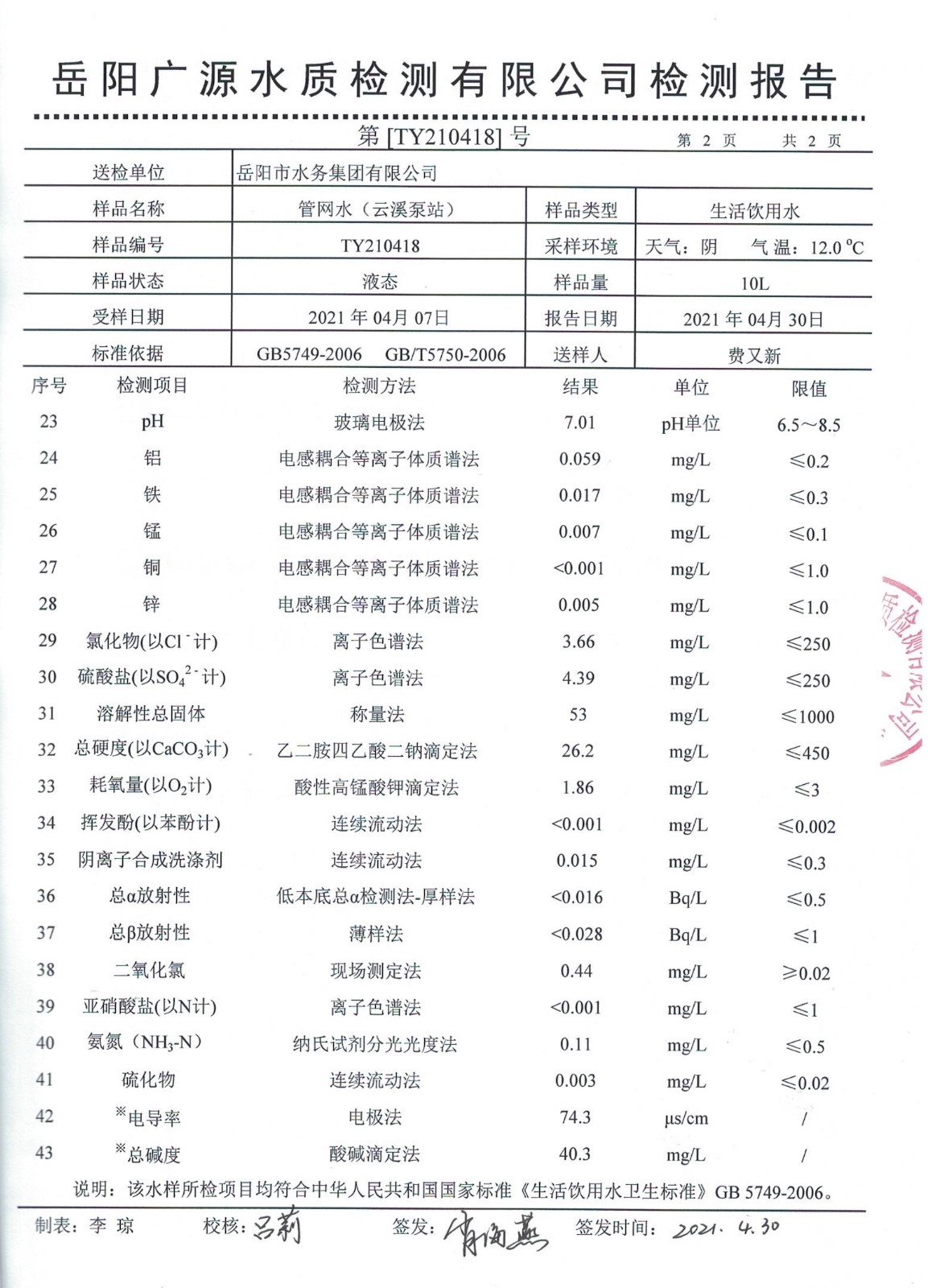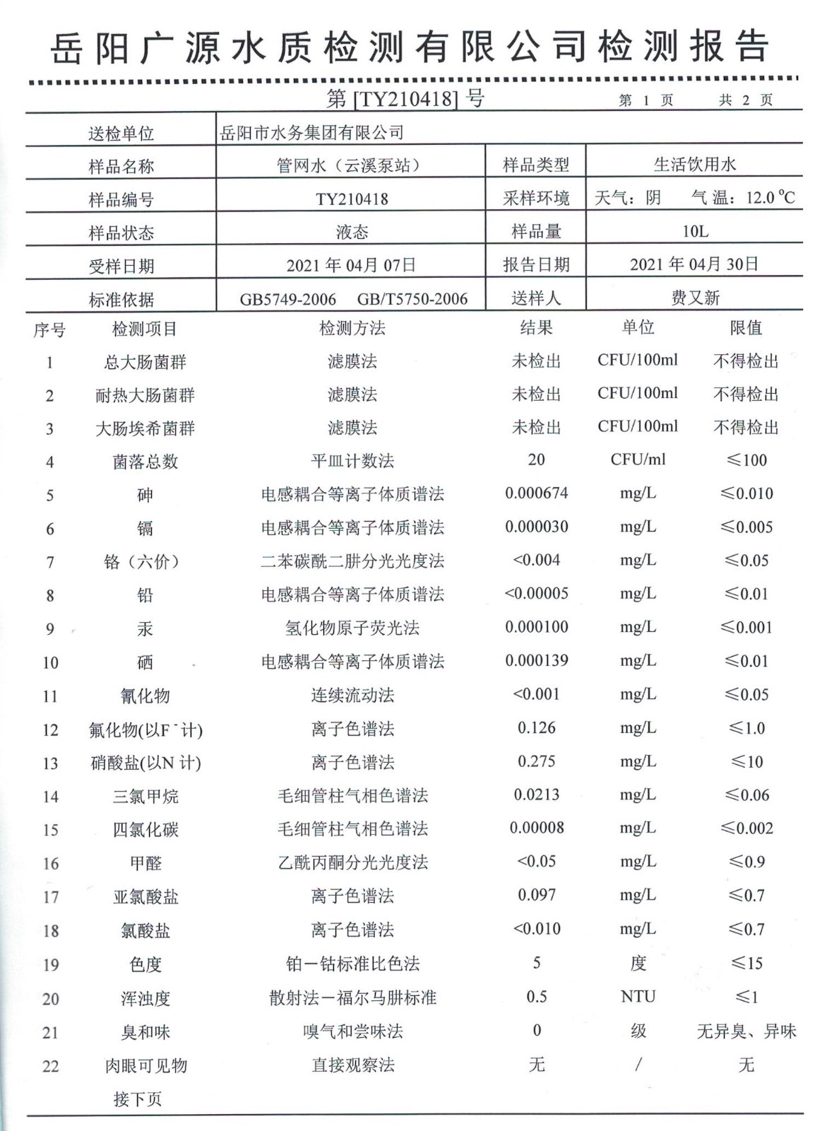 下一篇:2021年04月岳陽市水務(wù)集團(tuán)出廠水水質(zhì)檢測月報表