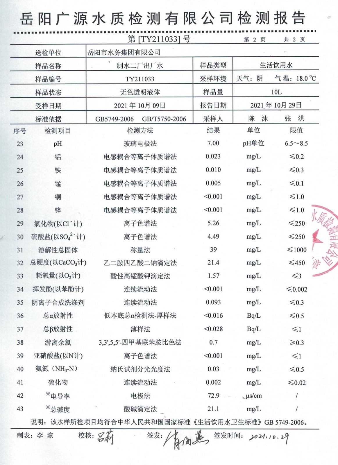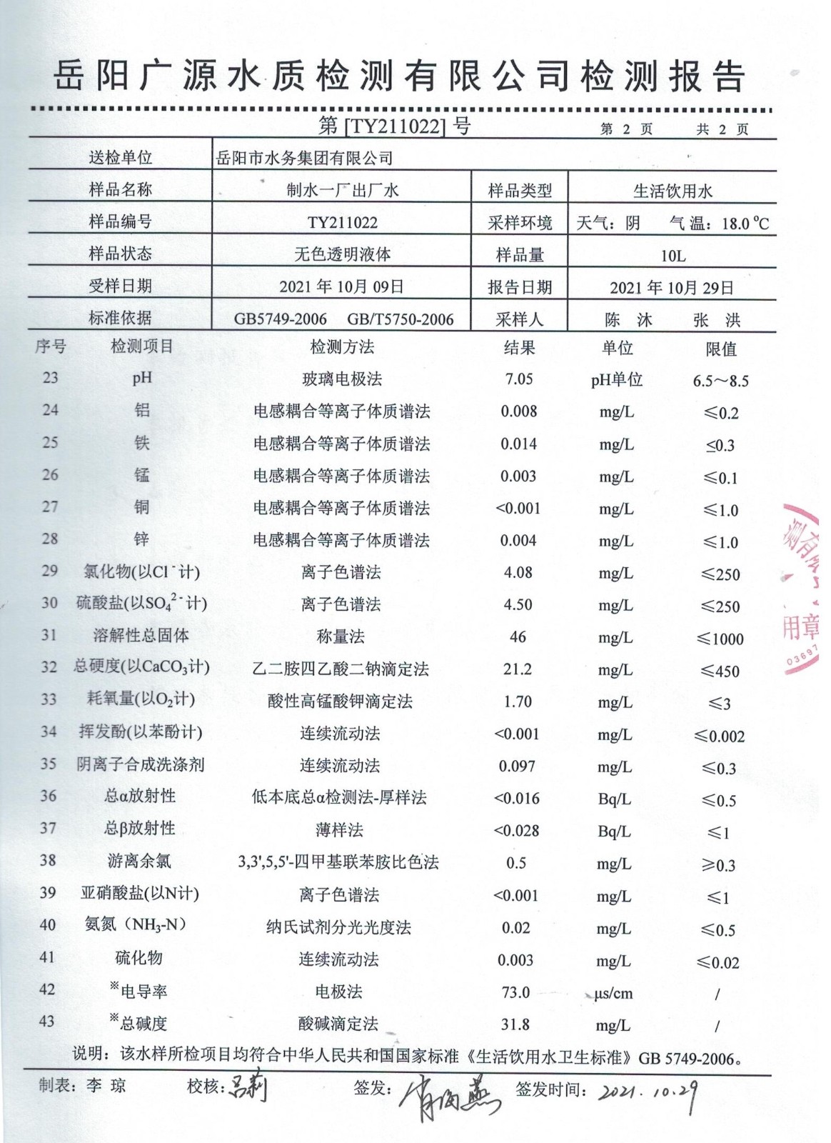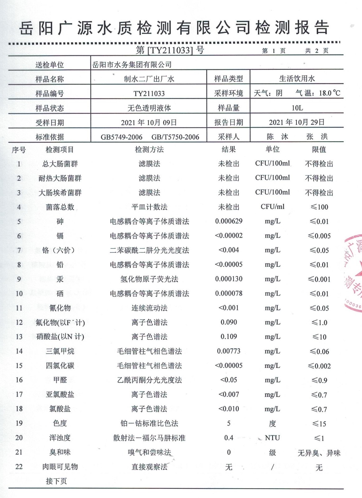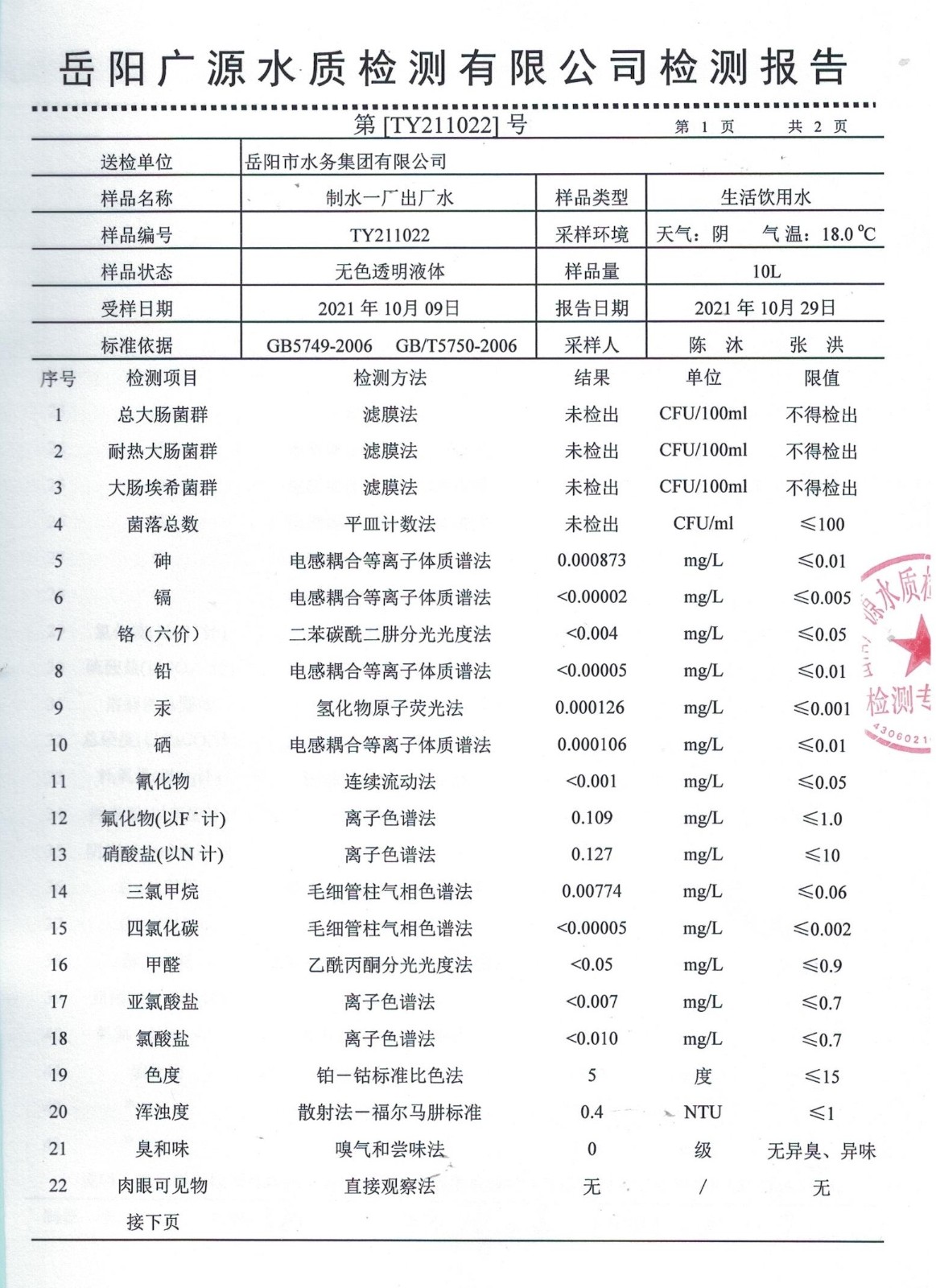 上一篇:2021年10月岳陽市水務集團管網水水質檢測月報表