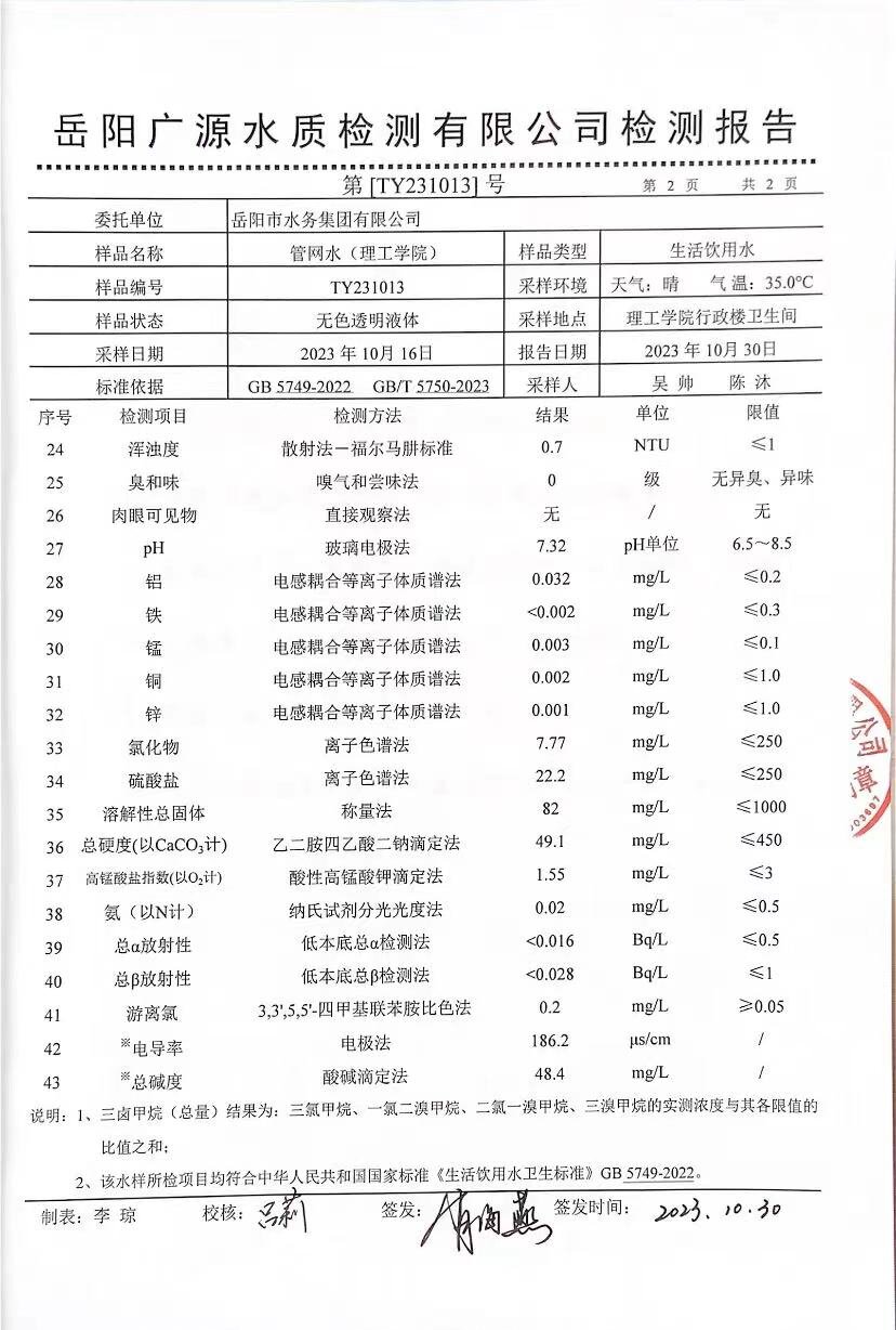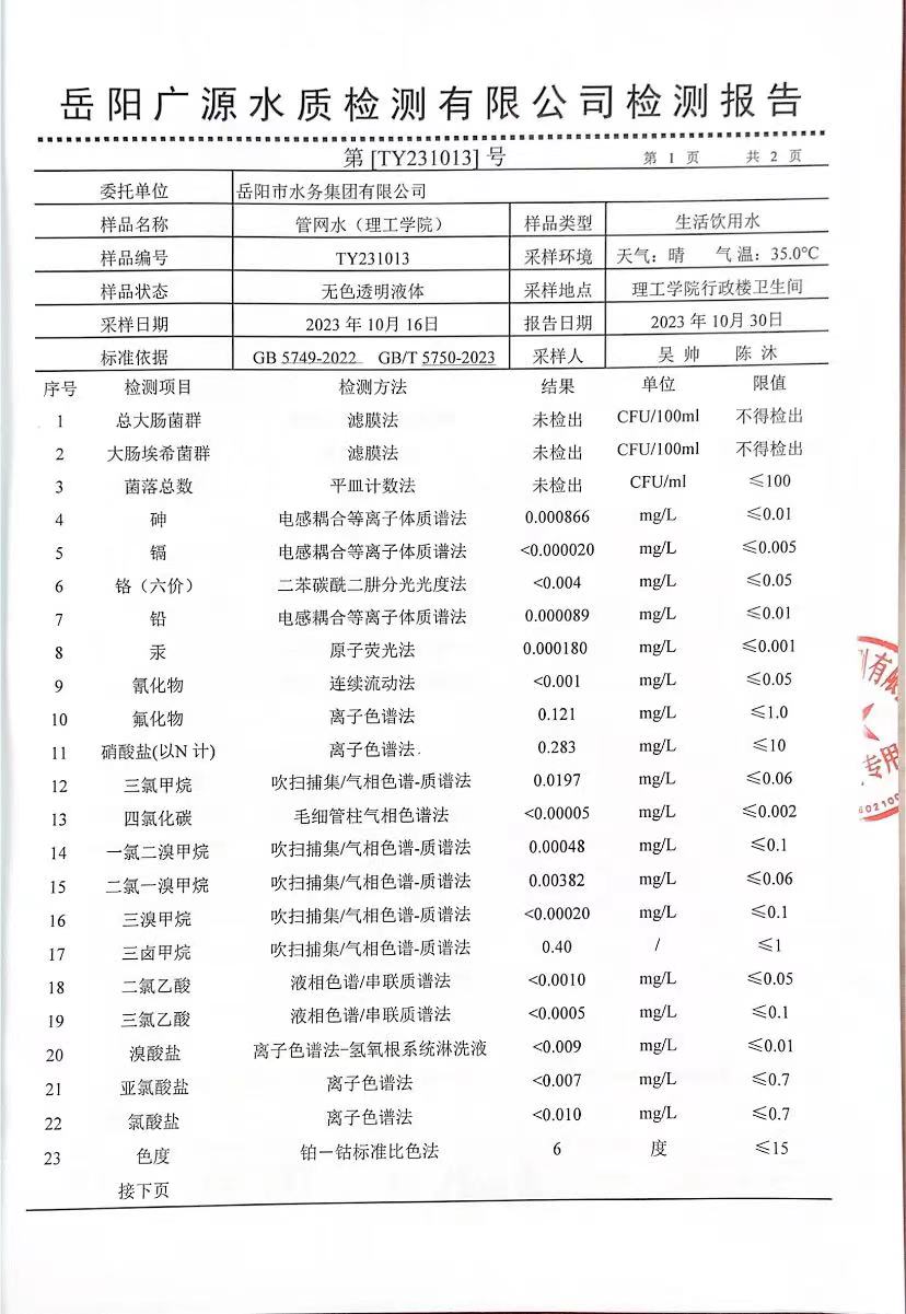 下一篇:2023年10月岳陽市水務(wù)集團(tuán)水源水水質(zhì)檢測月報(bào)表