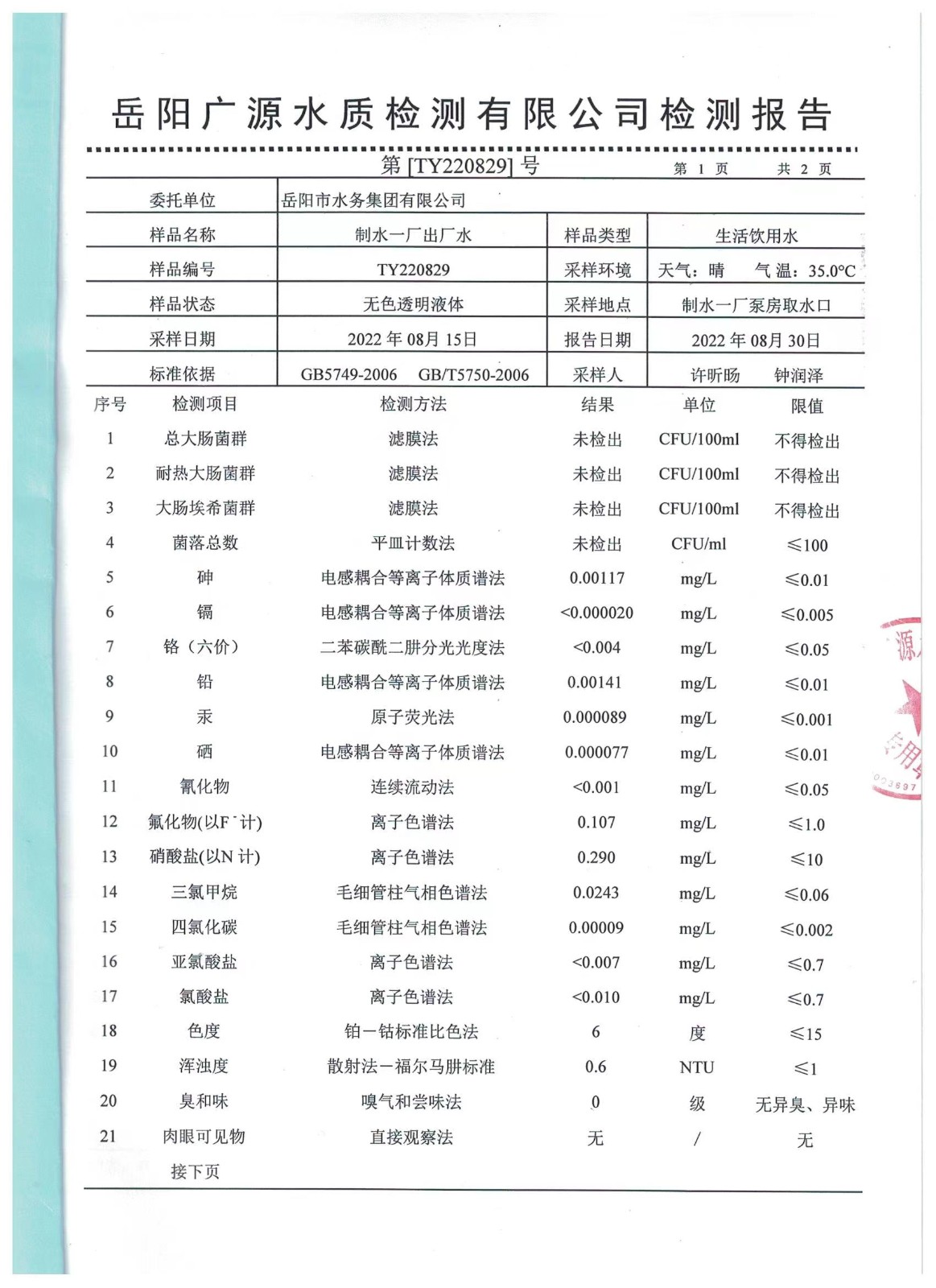 下一篇:2022年08月岳陽(yáng)市水務(wù)集團(tuán)水源水水質(zhì)檢測(cè)月報(bào)表