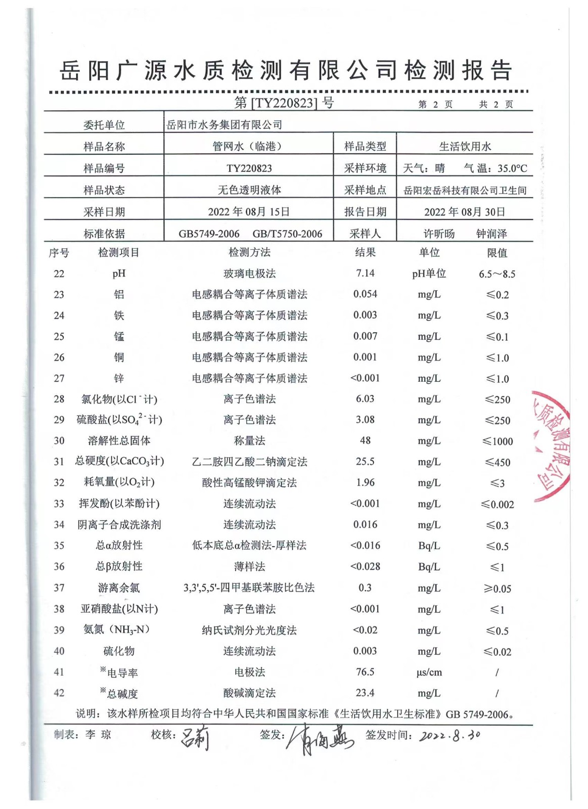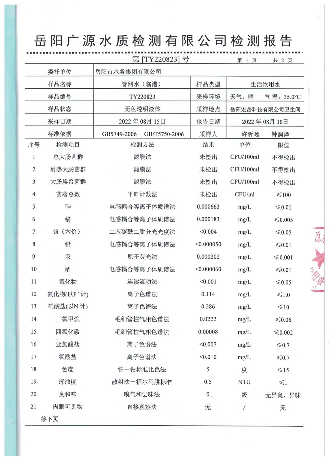 下一篇:2022年08月岳陽(yáng)市水務(wù)集團(tuán)出廠水水質(zhì)檢測(cè)月報(bào)表