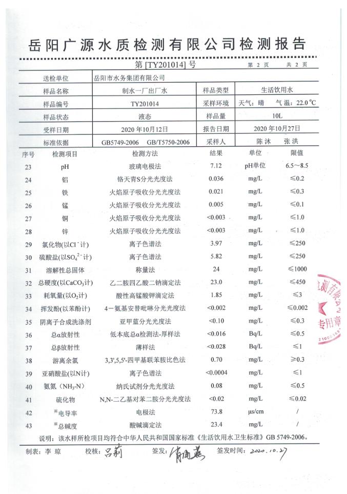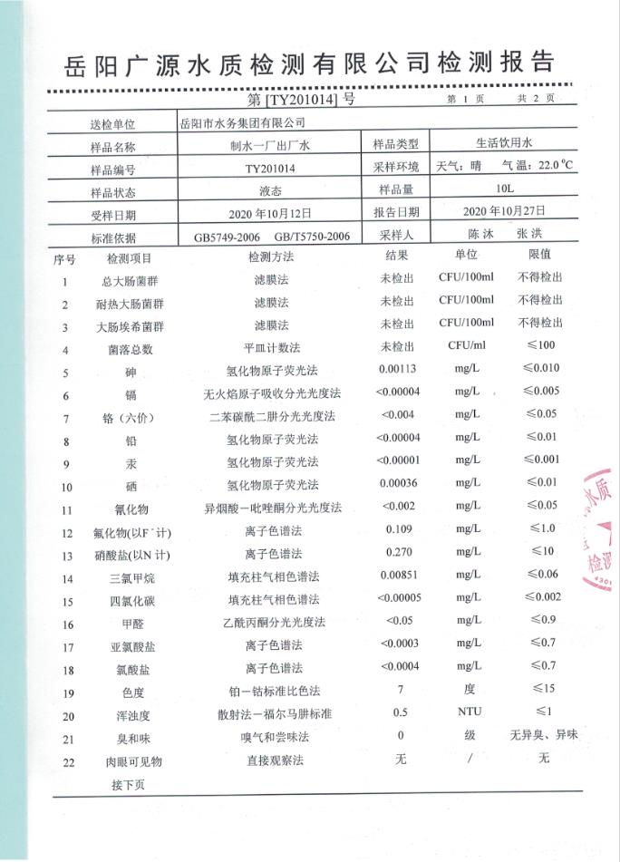 下一篇:2020年10月岳陽(yáng)市水務(wù)集團(tuán)管網(wǎng)水水質(zhì)檢測(cè)月報(bào)表