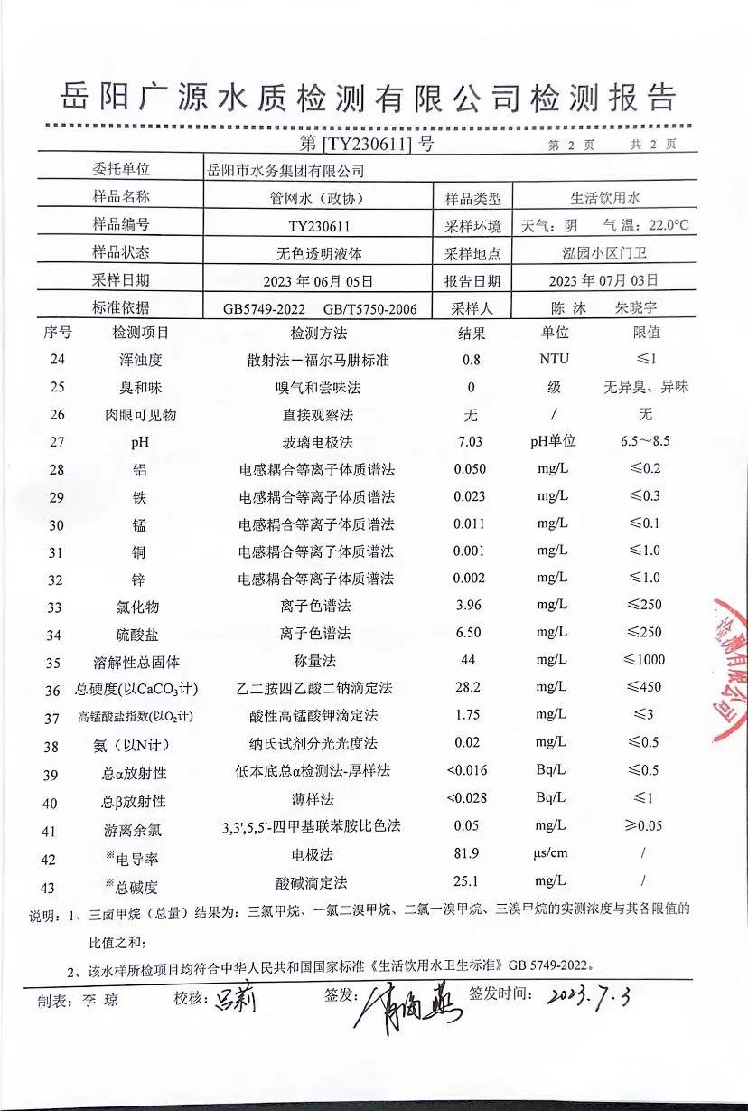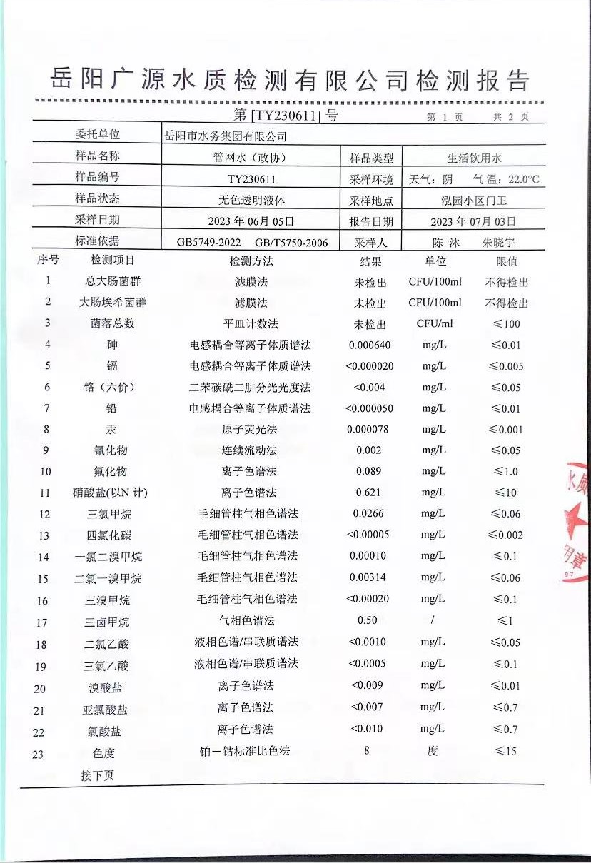 下一篇:2023年6月岳陽市水務集團水源水水質檢測月報表