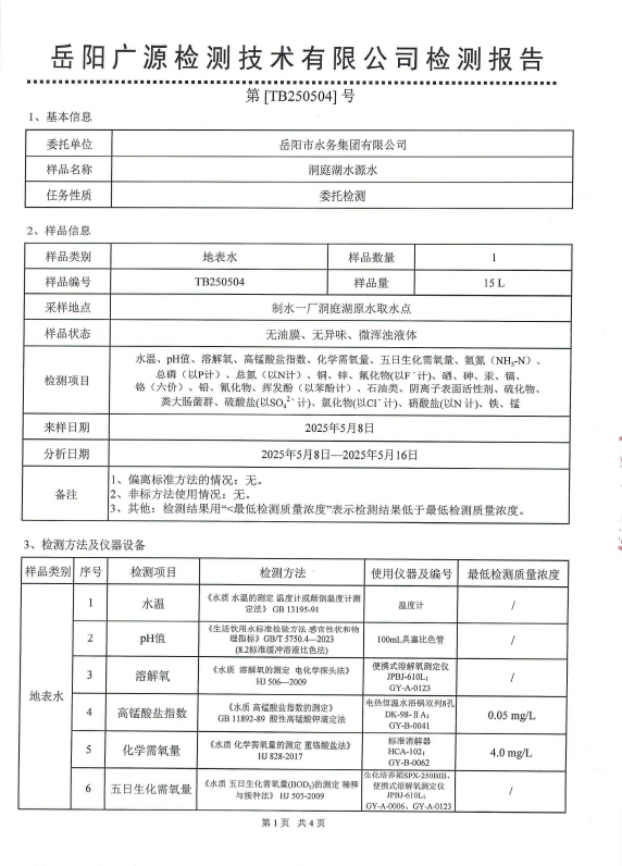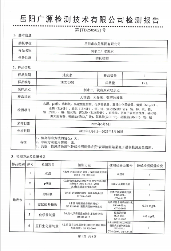 下一篇:2025年5月岳陽市水務(wù)集團(tuán)出廠水水質(zhì)檢測月報(bào)表