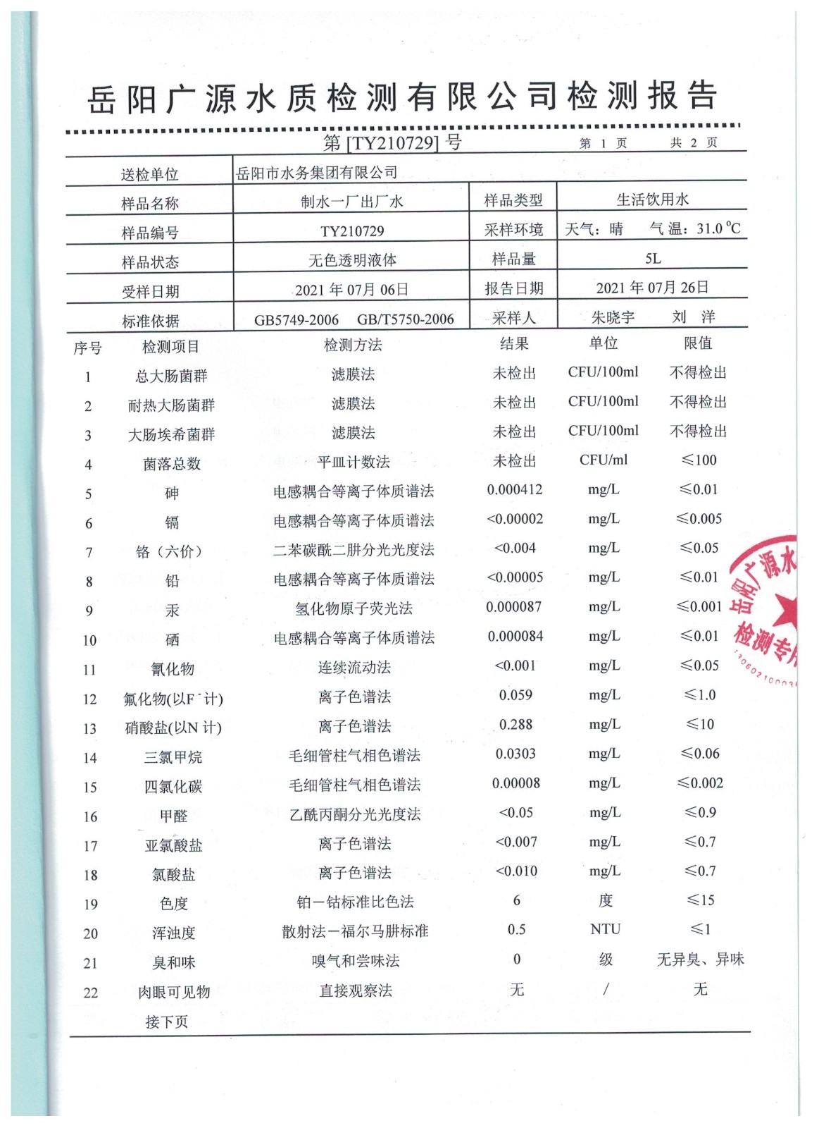 上一篇:2021年07月岳陽市水務集團管網(wǎng)水水質(zhì)檢測月報表