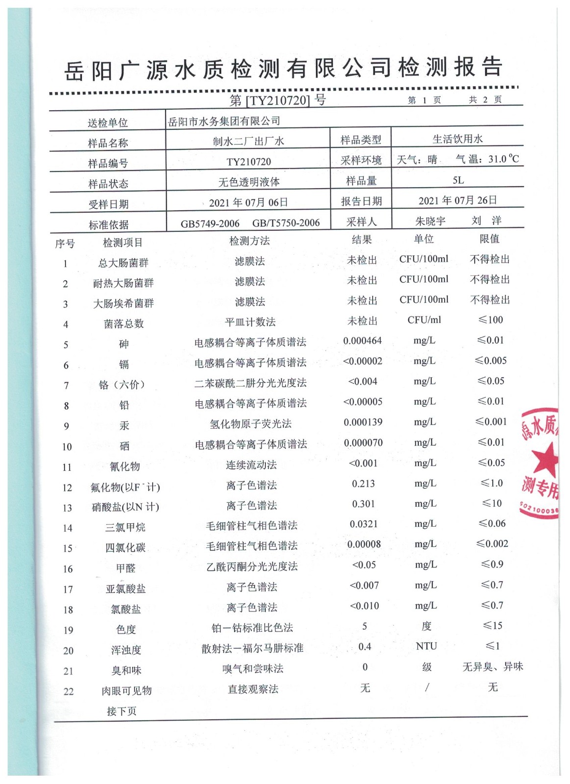 下一篇:2021年07月岳陽市水務集團水源水水質(zhì)檢測月報表
