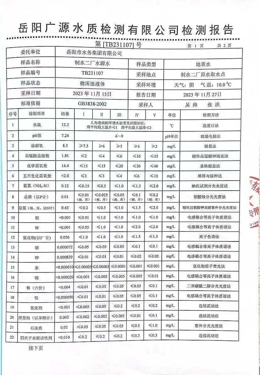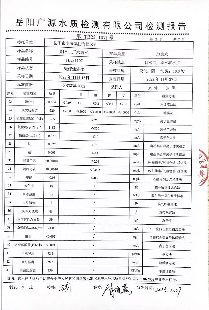 下一篇:2023年11月岳陽市水務(wù)集團(tuán)出廠水水質(zhì)檢測月報表